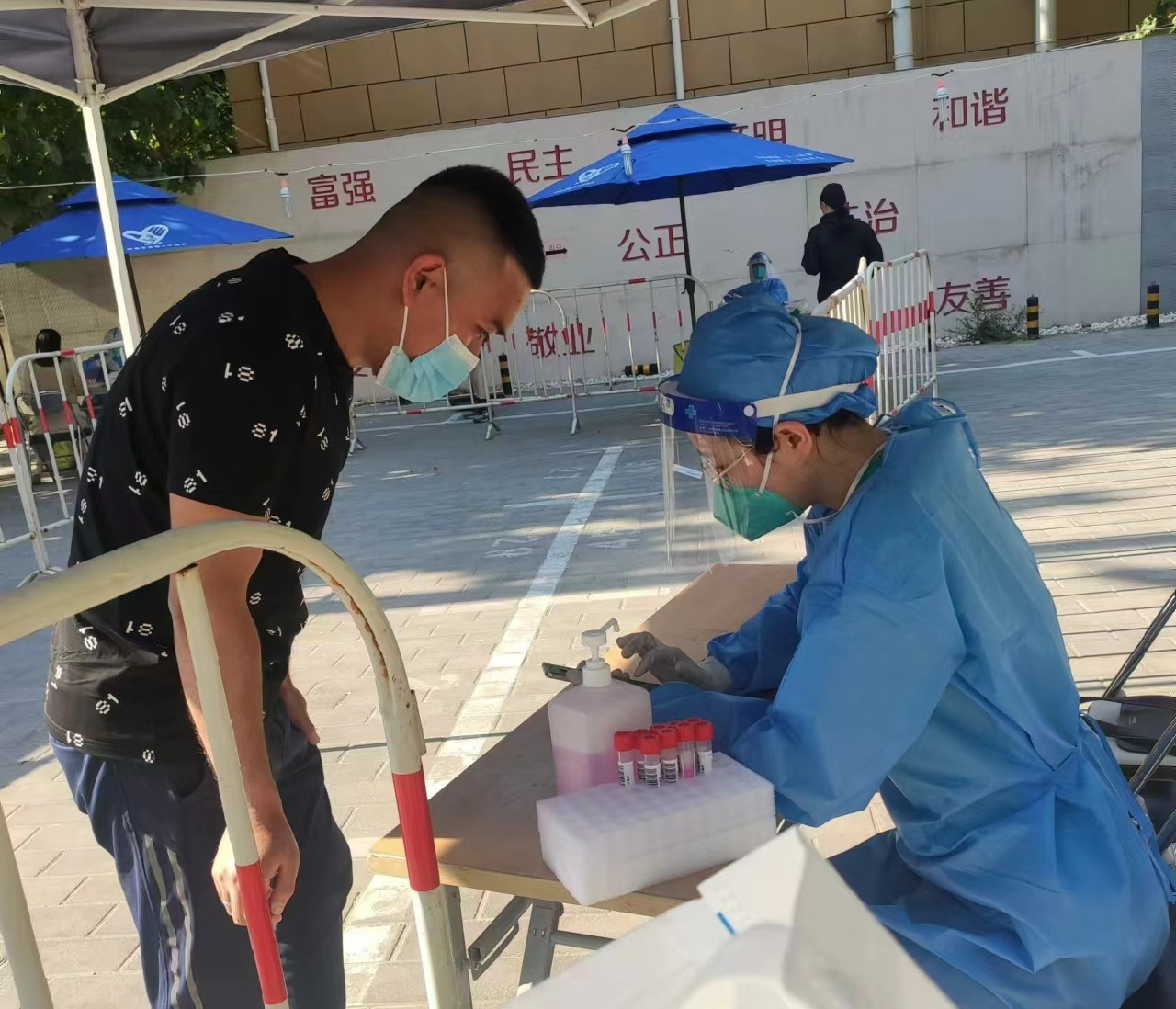 “麻烦您核对下,姓名和身份证号没错吧?”5月16日下午,在朝阳区劲松街道首城社区核酸检测点,记者作为下沉党员参与核酸检测扫码录入工作,用一部装有核酸采样录入系统的手机扫描居民身份证,在扫出身份信息后,对信息进行一一查验核实。