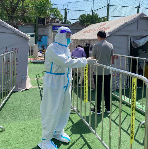 在西城区椿树街道的核酸检测点,有一位在通道组织居民扫码排队的“大白”,即便戴着口罩也难掩他洪亮的声音。可很少有人知道,还有1年就退休的他,是带着颈椎里的8颗钢钉来支援社区的。