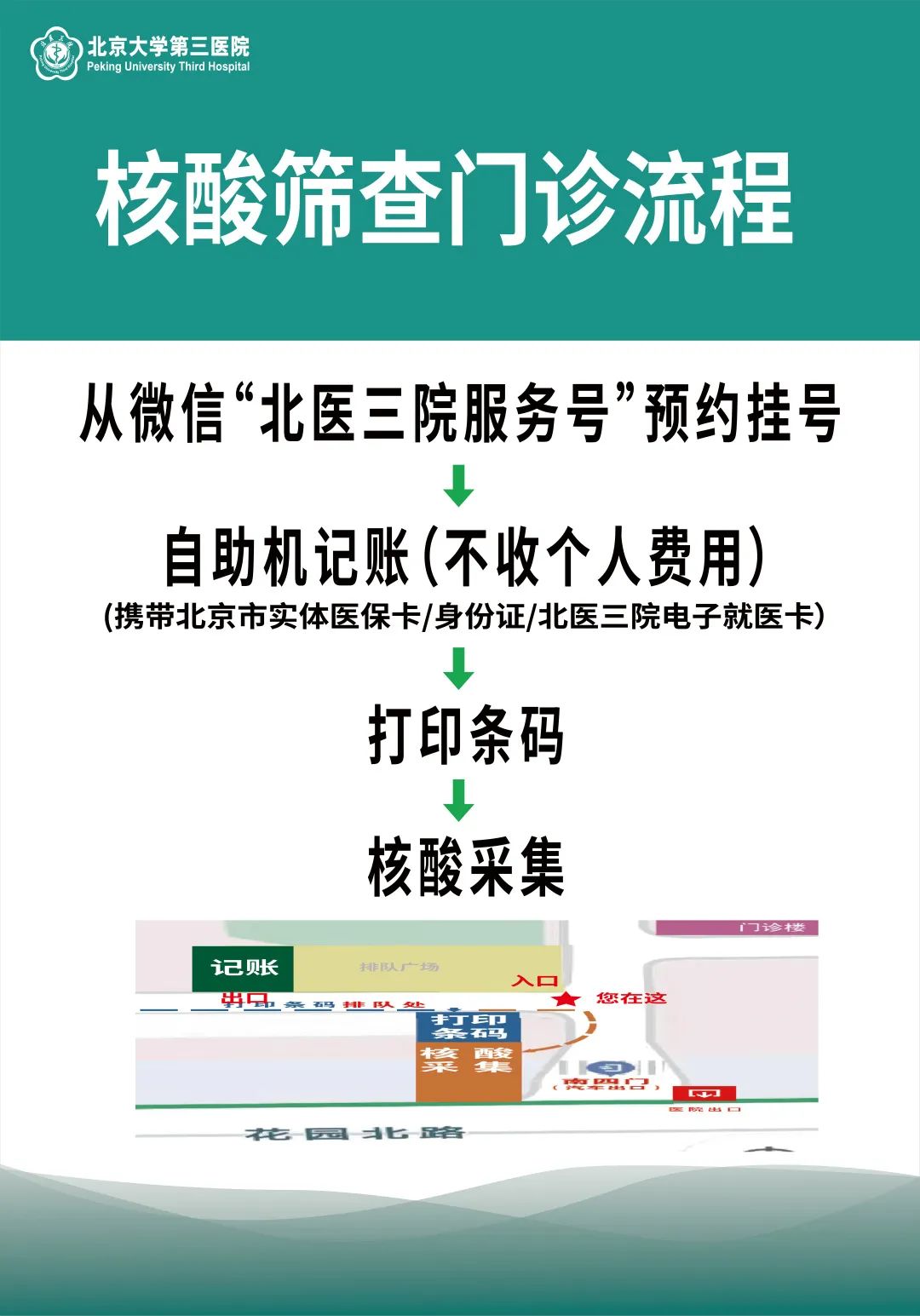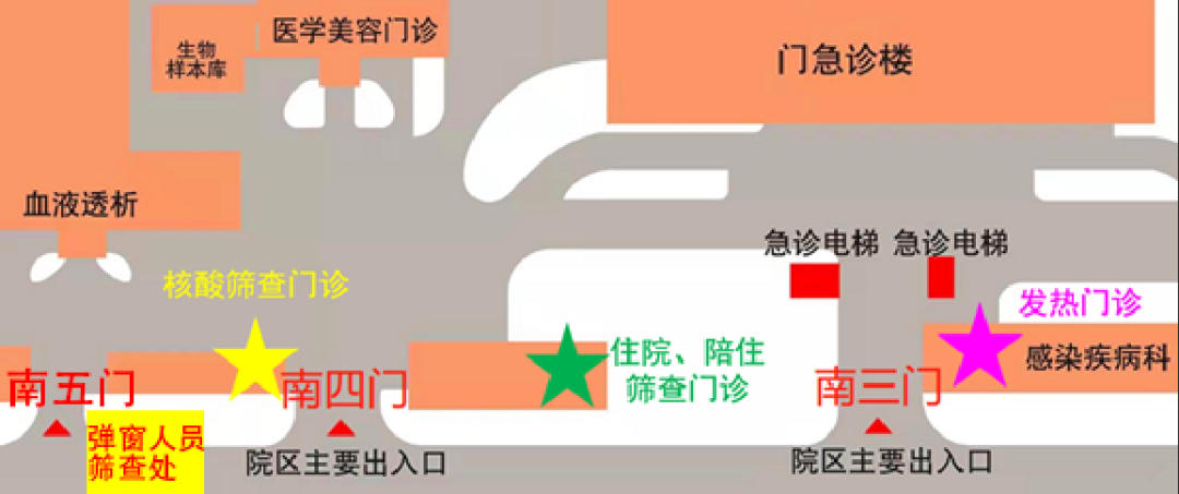 (注意:请勿进入医院院内,直接前往南5门弹窗人员筛查处)