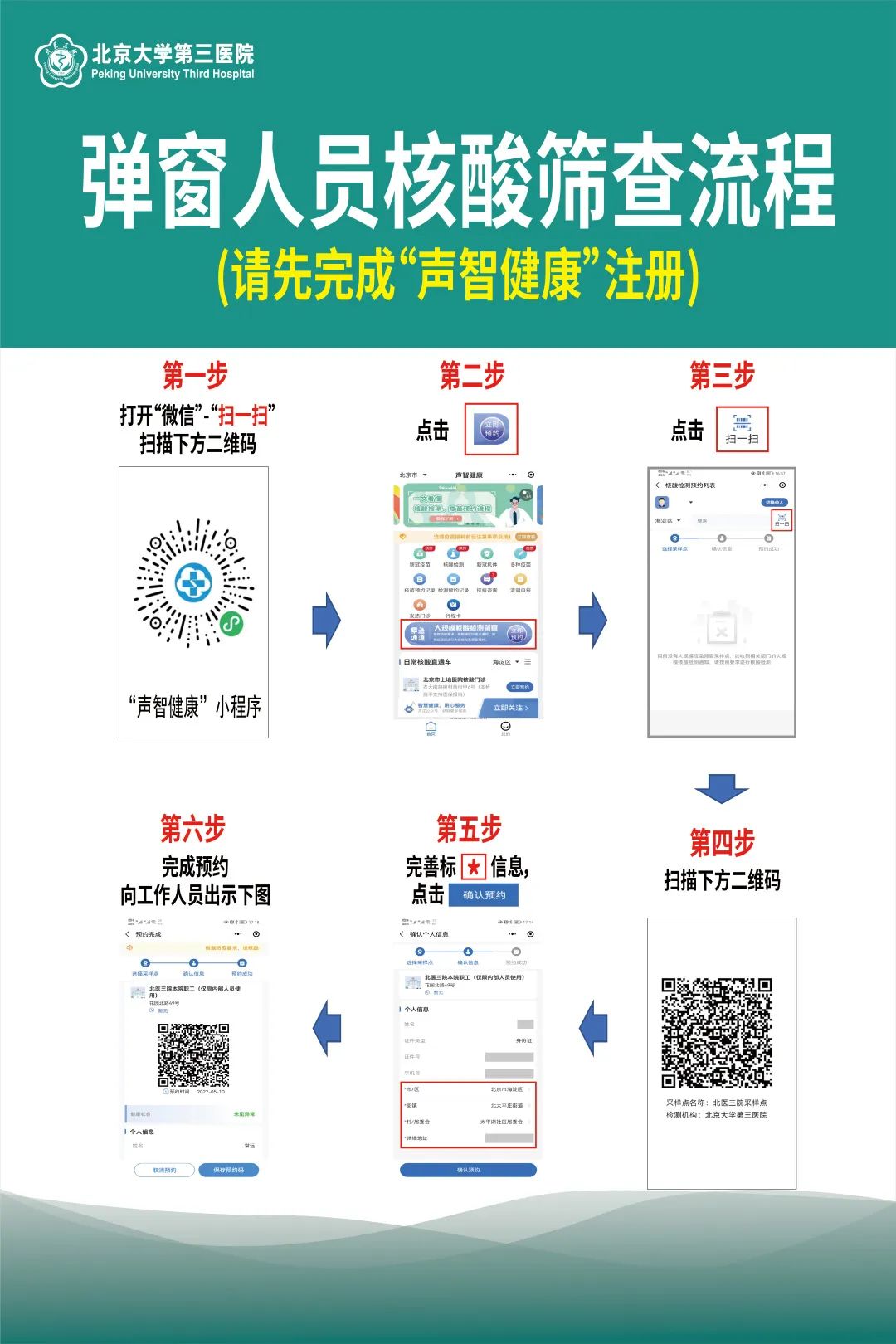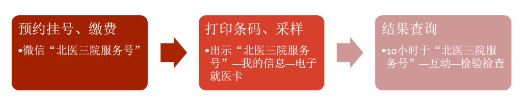 预约方式:微信“北医三院服务号”—在线挂号—“核酸筛查门诊”。