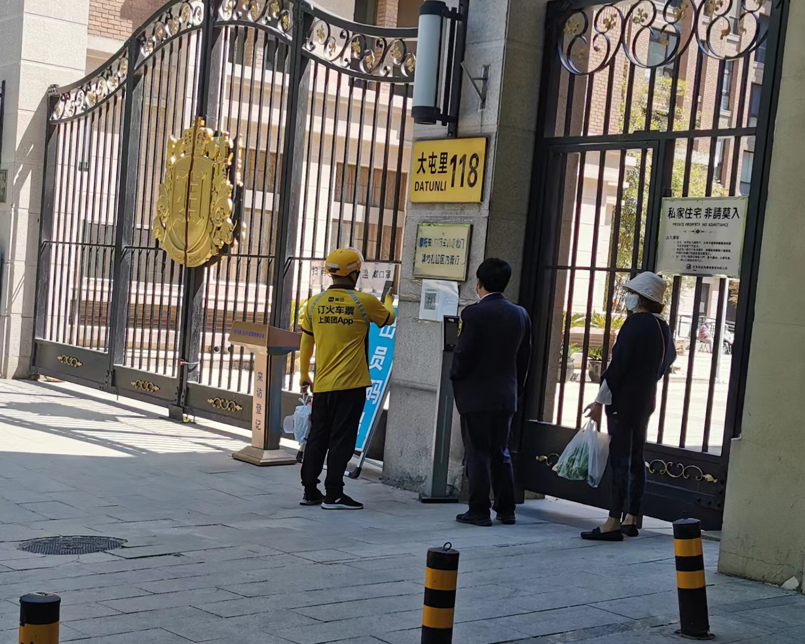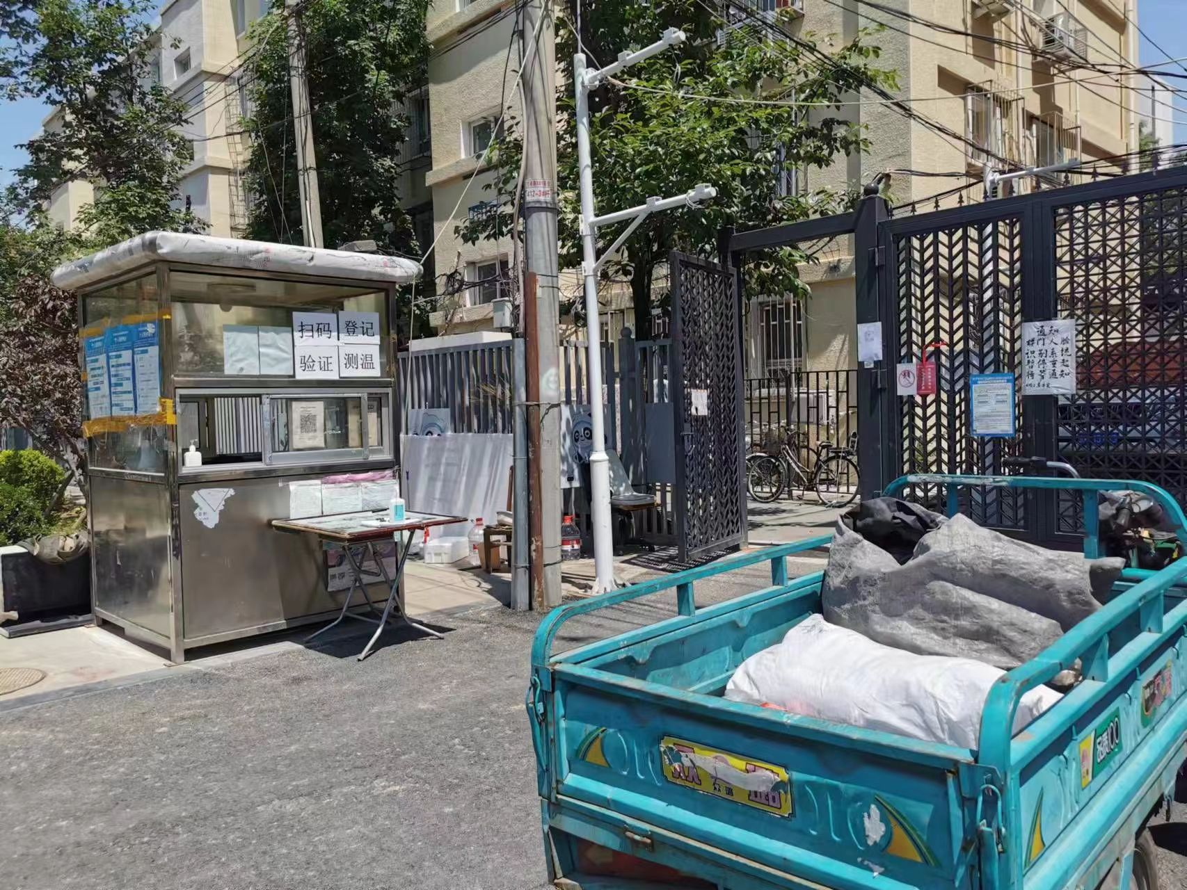 西门大铁栅栏门右侧半开着一扇小门,记者顺利进入小门,发现铁栅栏上还贴着一张有关甘家口街道的“疫情防控通知”,其中一条写着,“小区出入口实行24小时值守,小区居民进入严格落实测温、查证、扫码、登记等防控措施。外来人员非必要不进小区,外卖、快递人员不进小区。”文件落款为“甘家口街道新冠疫情防控领导小组办公室”,发布时间为今年5月9日。