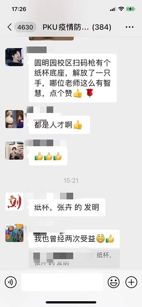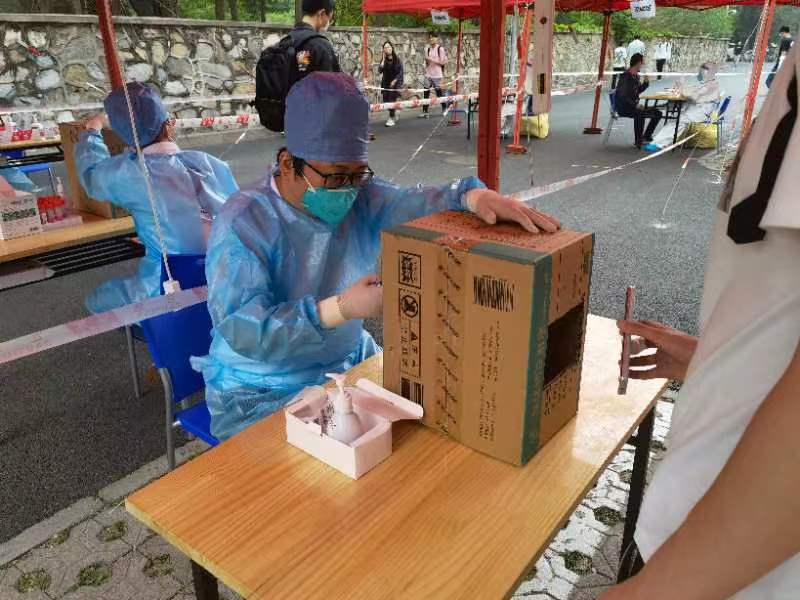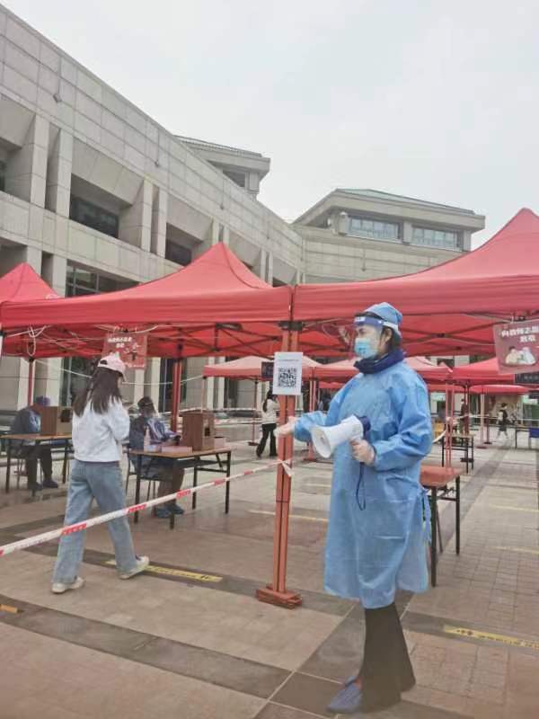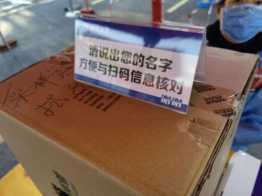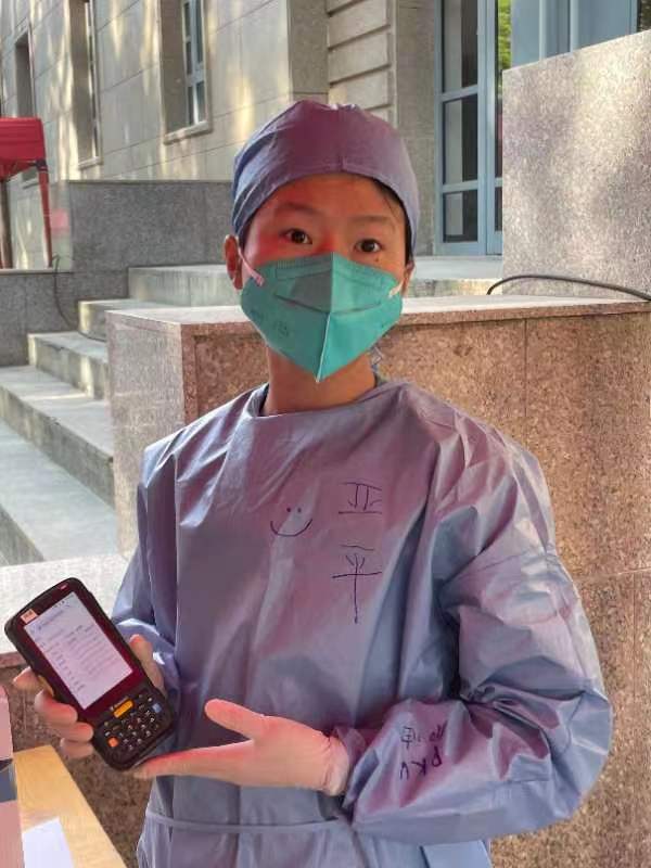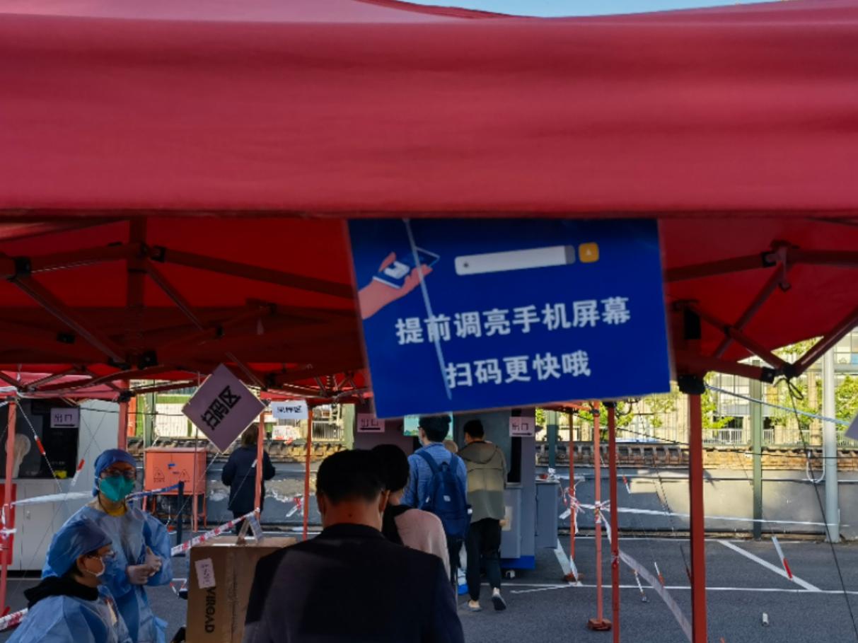 他们发挥聪明才智,为了让每一次“打卡”更加安全、高效、便捷,志愿者们化身成“发明家”和“绘画师”,他们还通过种种方式提醒进行核酸检测的师生注意安全保护。