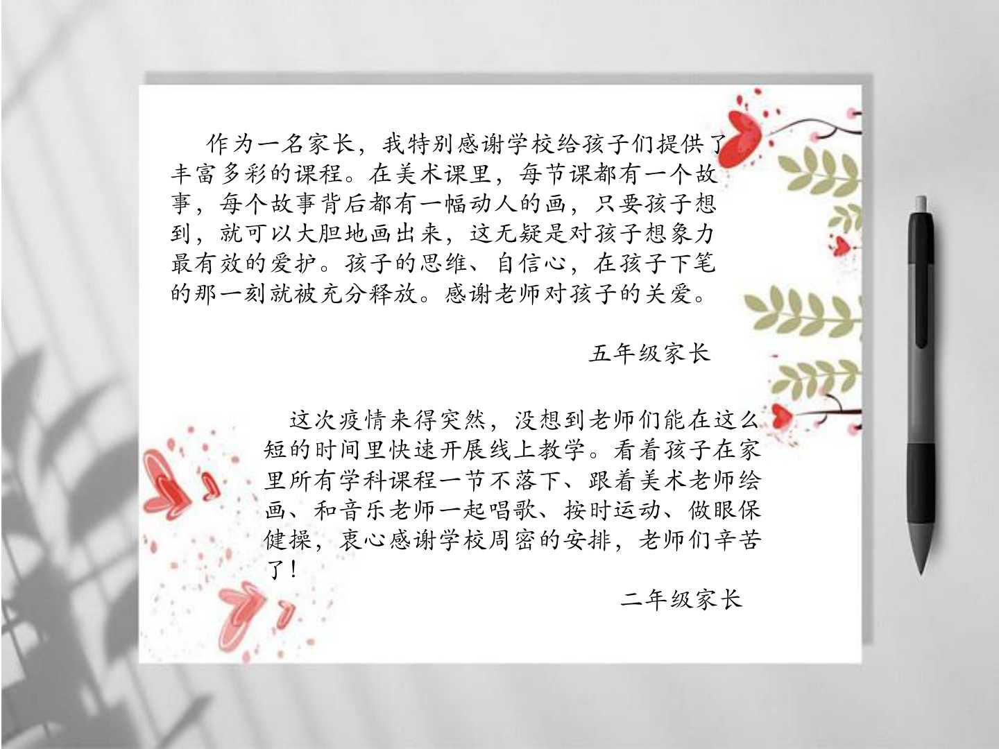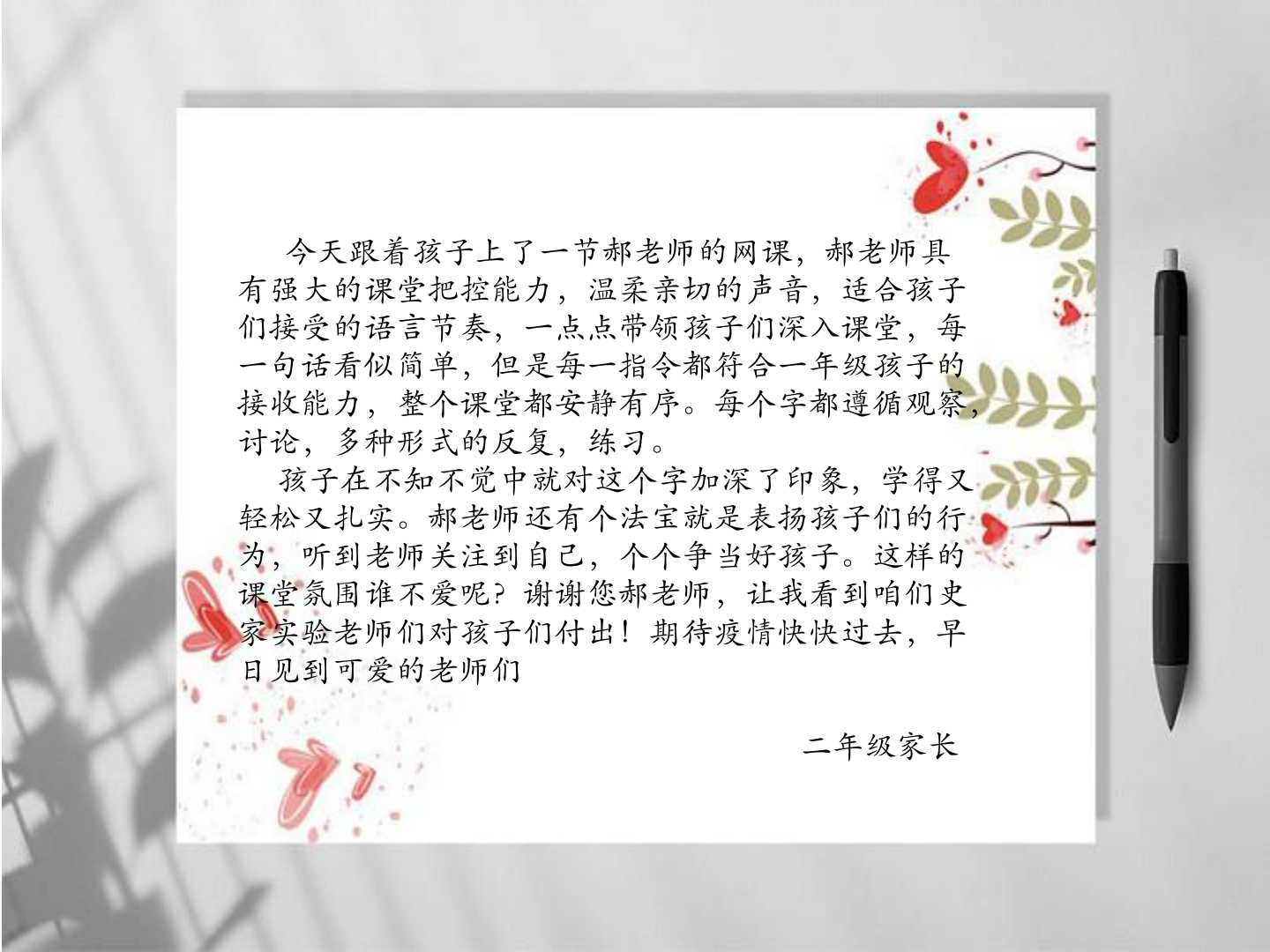 家长们,请您们放心,我们与孩子们在一起。大家戮力同心,为孩子的成长保驾护航!