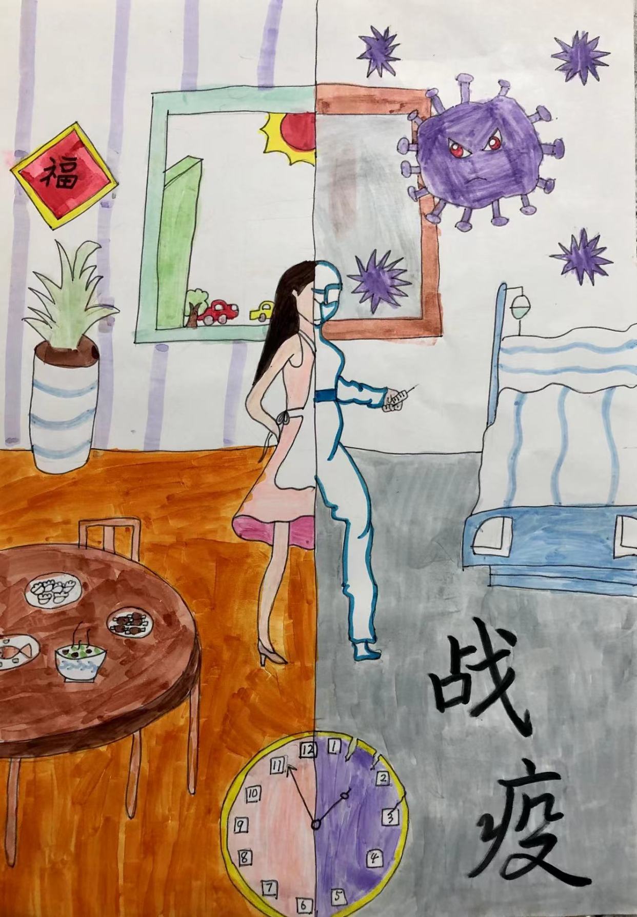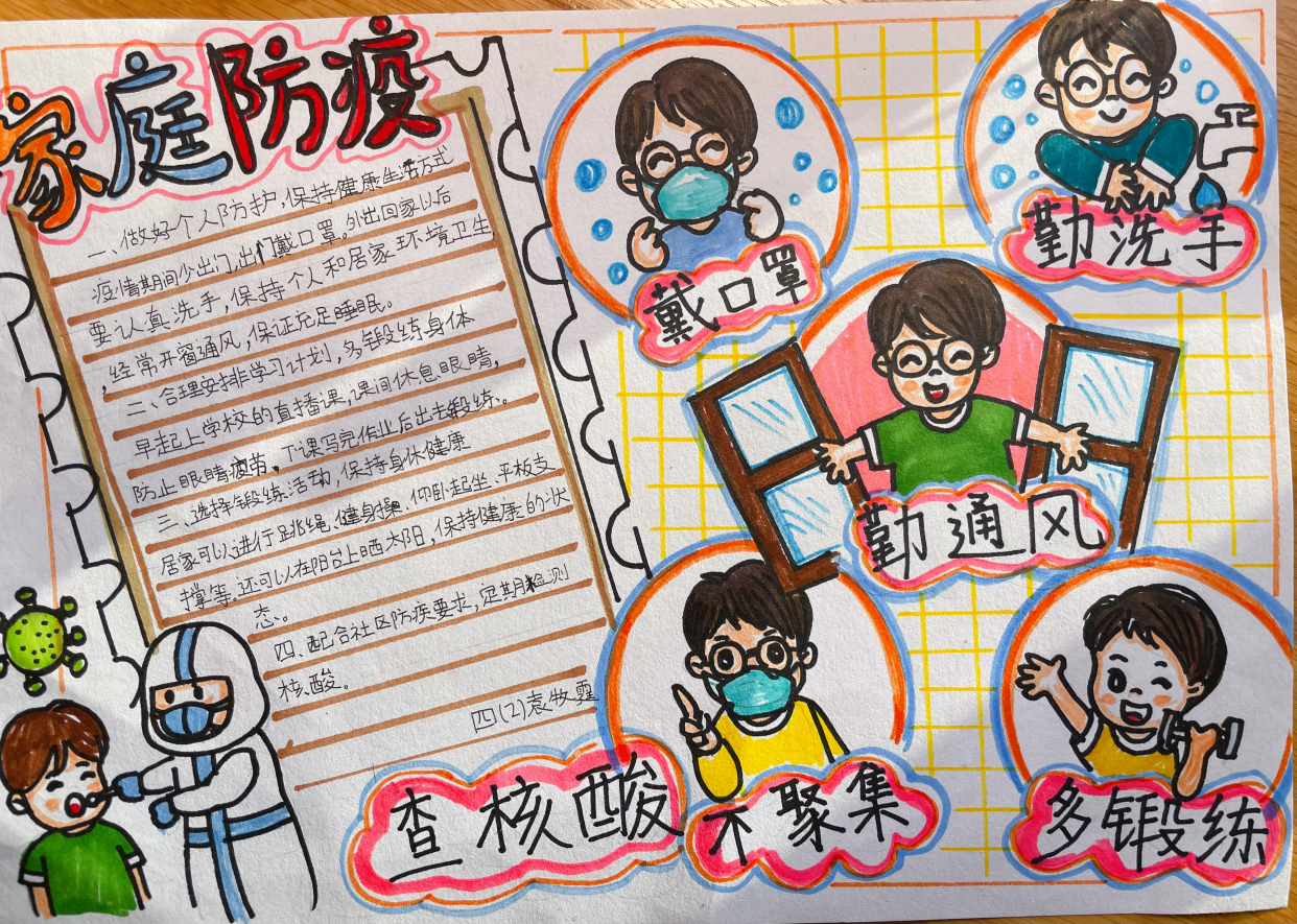 疫情期间,同学们不仅认真配合科学防疫,积极接种疫苗,按时完成核酸检测,还将疫情生活中遇到的实际问题进行了大胆的创意解决。