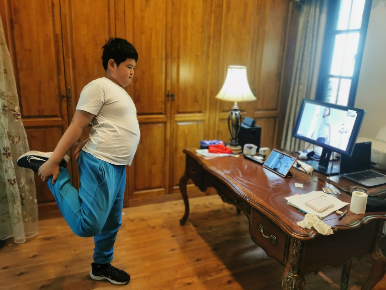 运动小健将:认真进行线上课程学习的同时,居家体育锻炼也是必不可少的。同学们在镜头前跟着体育老师一起进行各种方式的体育锻炼,让我们在有限的空间内也能大汗淋漓,身心愉悦。