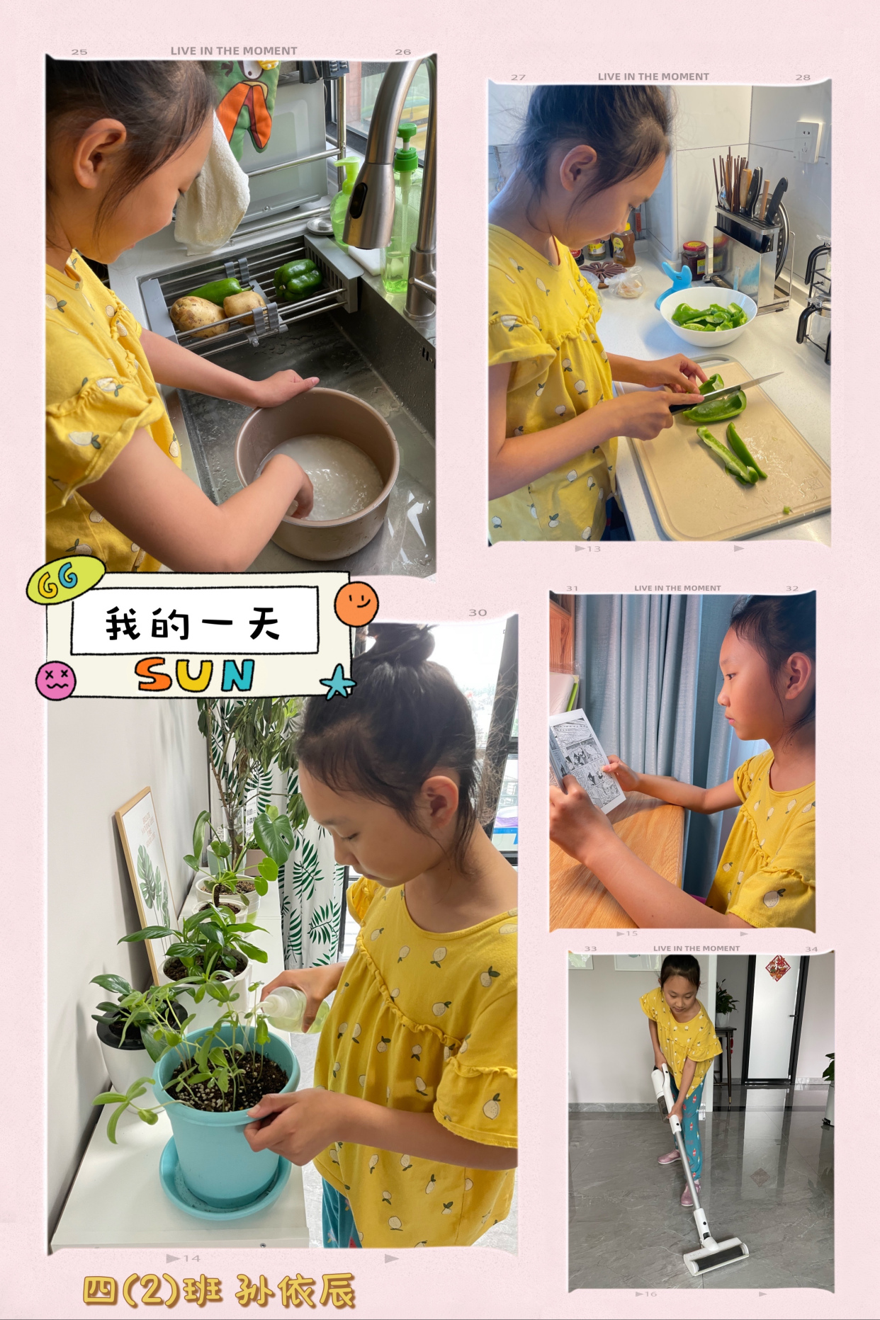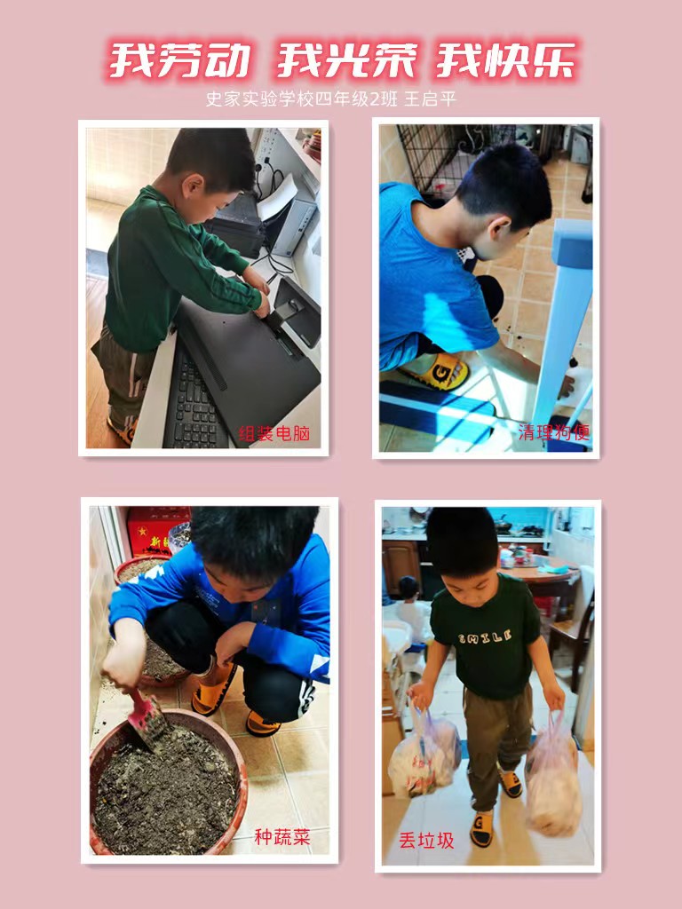 劳动创造我在行:尊重劳动,参与劳动,科学的劳动教育帮助学生树立正确的价值观。居家期间,除了完成每日的学习任务和体育锻炼计划外,同学们也积极地参与到家务劳动中,用自己的实际行动帮助长辈分担,而且体会到享受自己的劳动成果真是一种极大的成就感。