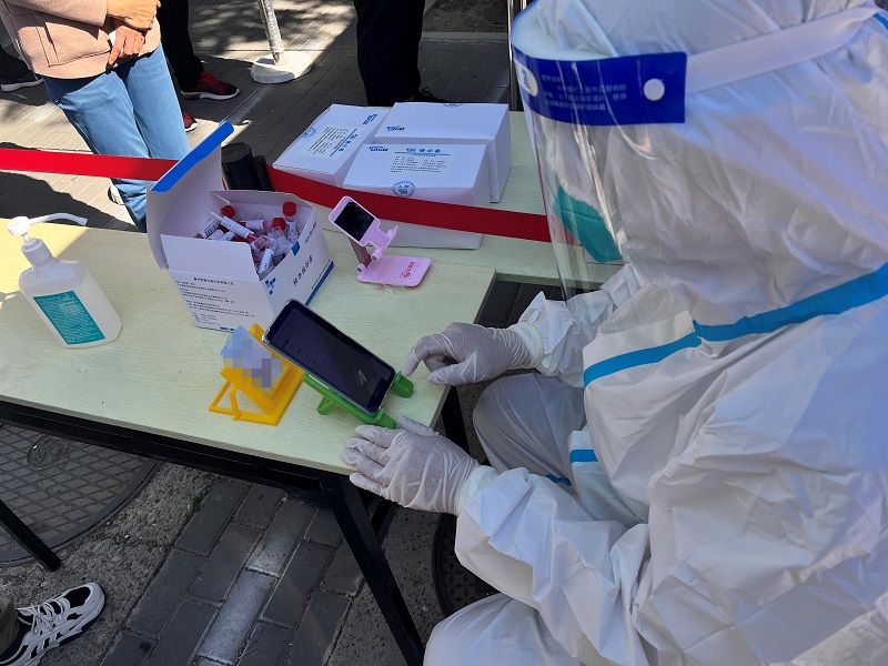 在城北街道东关南里社区核酸采样点,一款登记“神器”帮助工作人员提高了核酸采样的登记速度,不到10秒即可完成信息登记。