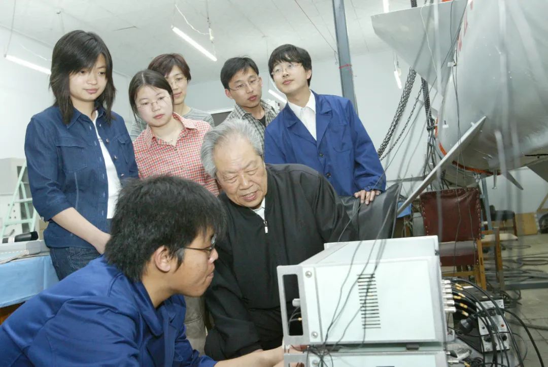 黄文虎院士在实验室指导学生