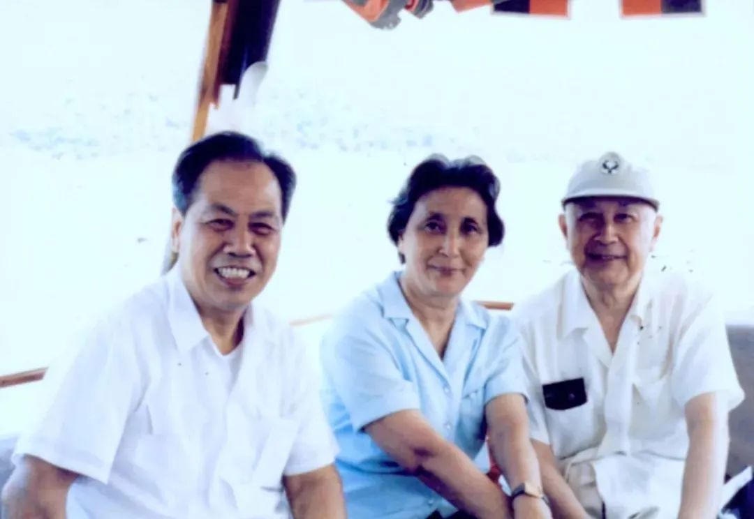 黄文虎(左一)与钱学森夫妇在镜泊湖