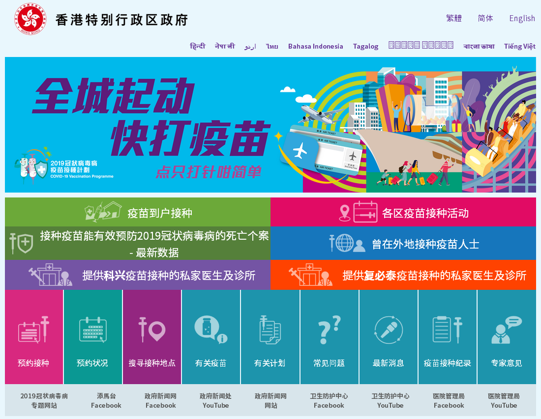 特区政府疫苗接种计划专题网站