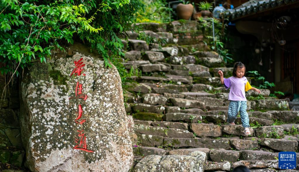 小朋友在云南省宁洱县那柯里茶马古道小镇玩耍(5月14日摄)。新华社记者江文耀摄