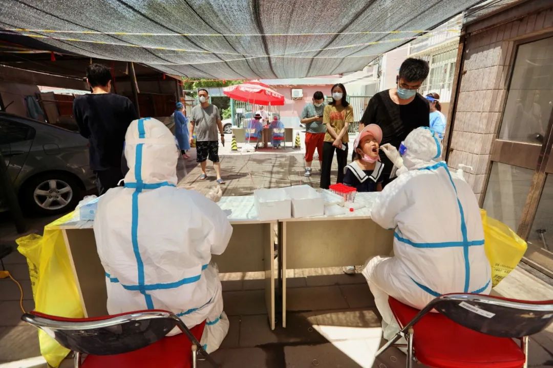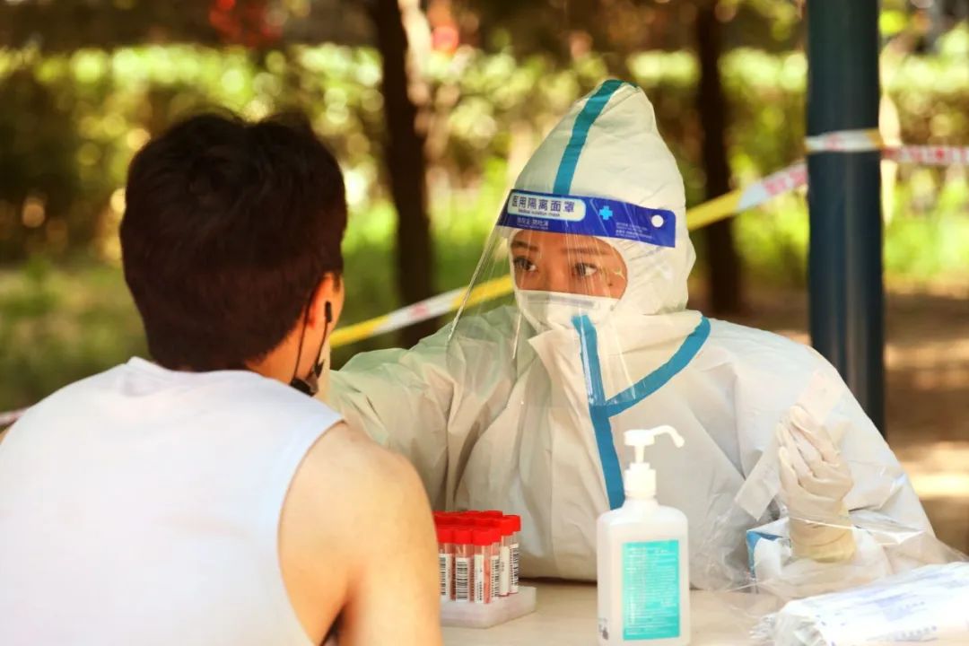 35℃的高温,烈日当头,他们,穿上防护服,放弃了周末休息,早早就来到核酸检测现场,战高温、斗酷暑,以实际行动筑起了疫情防线……