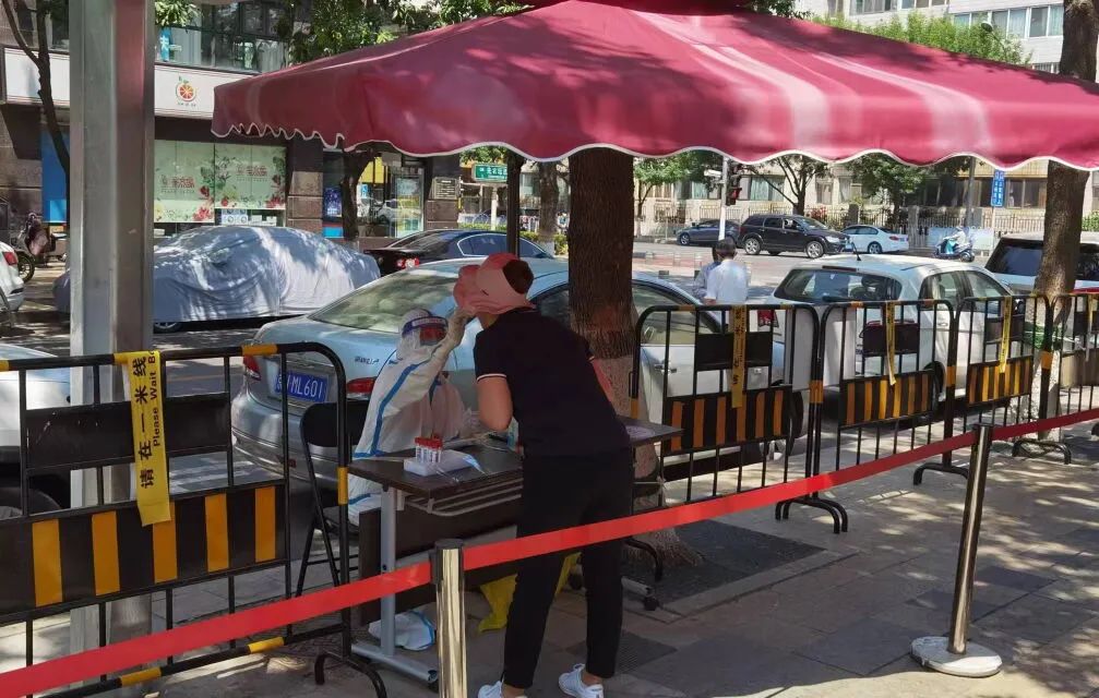 ⬆️展览路街道团结社区在核酸检测点安装了遮阳棚和遮阳伞,有效减少日晒