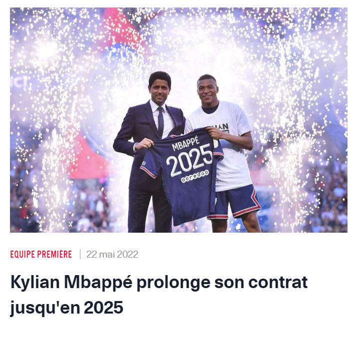 今夏世界足坛最受关注的自由球员动向揭晓!北京时间5月22日凌晨,法甲巴黎圣日耳曼俱乐部官方宣布与法国球星姆巴佩续约至2025年6月。