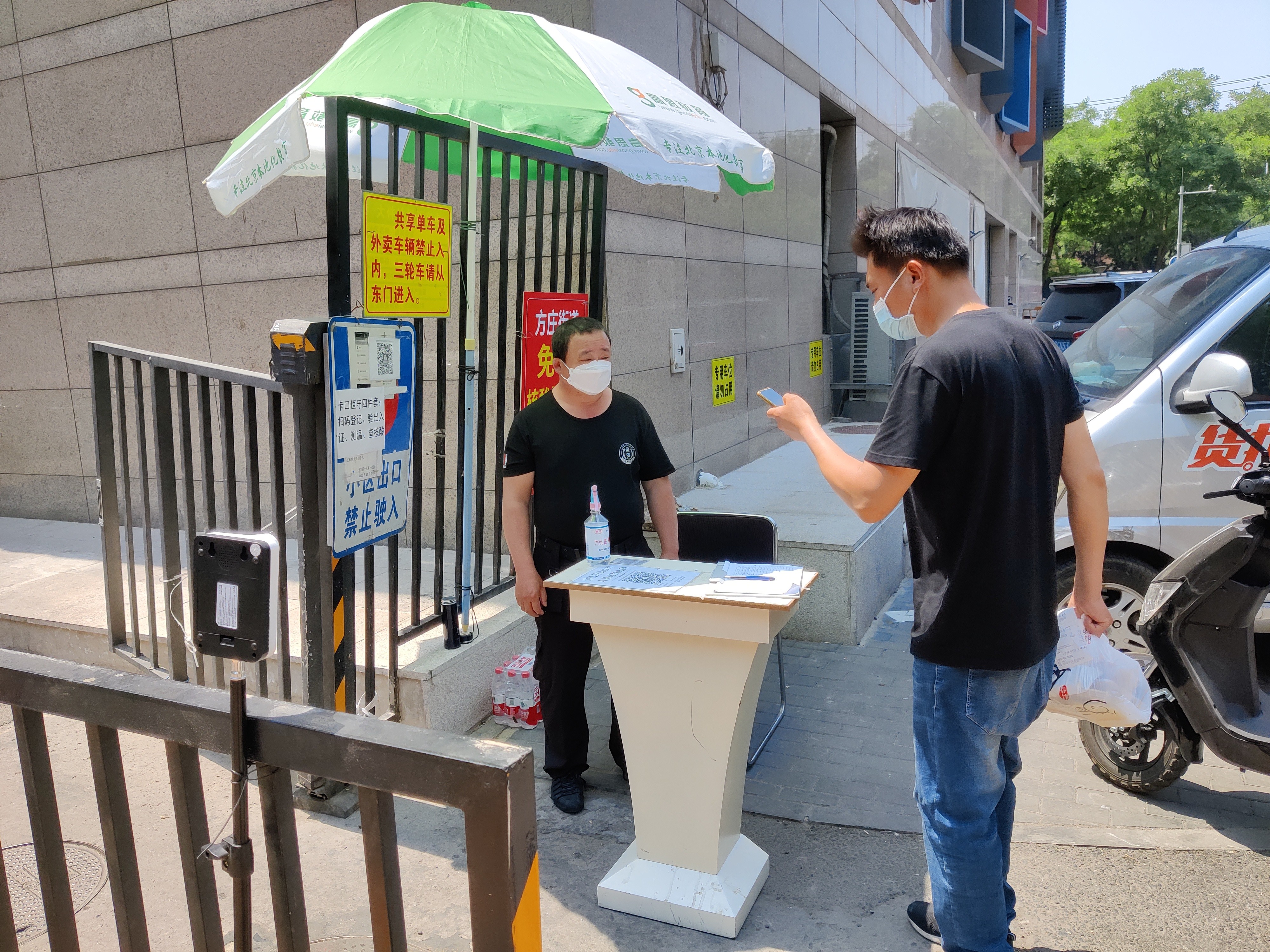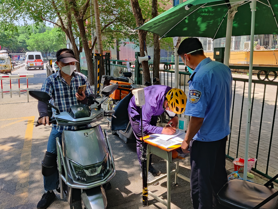 芳古园一区第一社区有居民5800多人。社区党委书记李青介绍,提级管控后社区第一时间落实24小时卡口值守要求。5月20日当天晚上,社区干部、街道下沉干部和社区志愿者连夜加班制作印刷了小区出入证,并在21日分楼栋、分时段发放到居民手中。