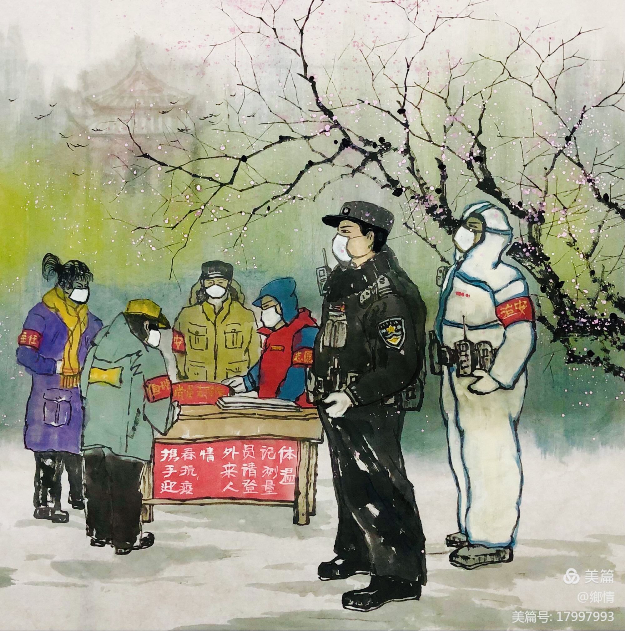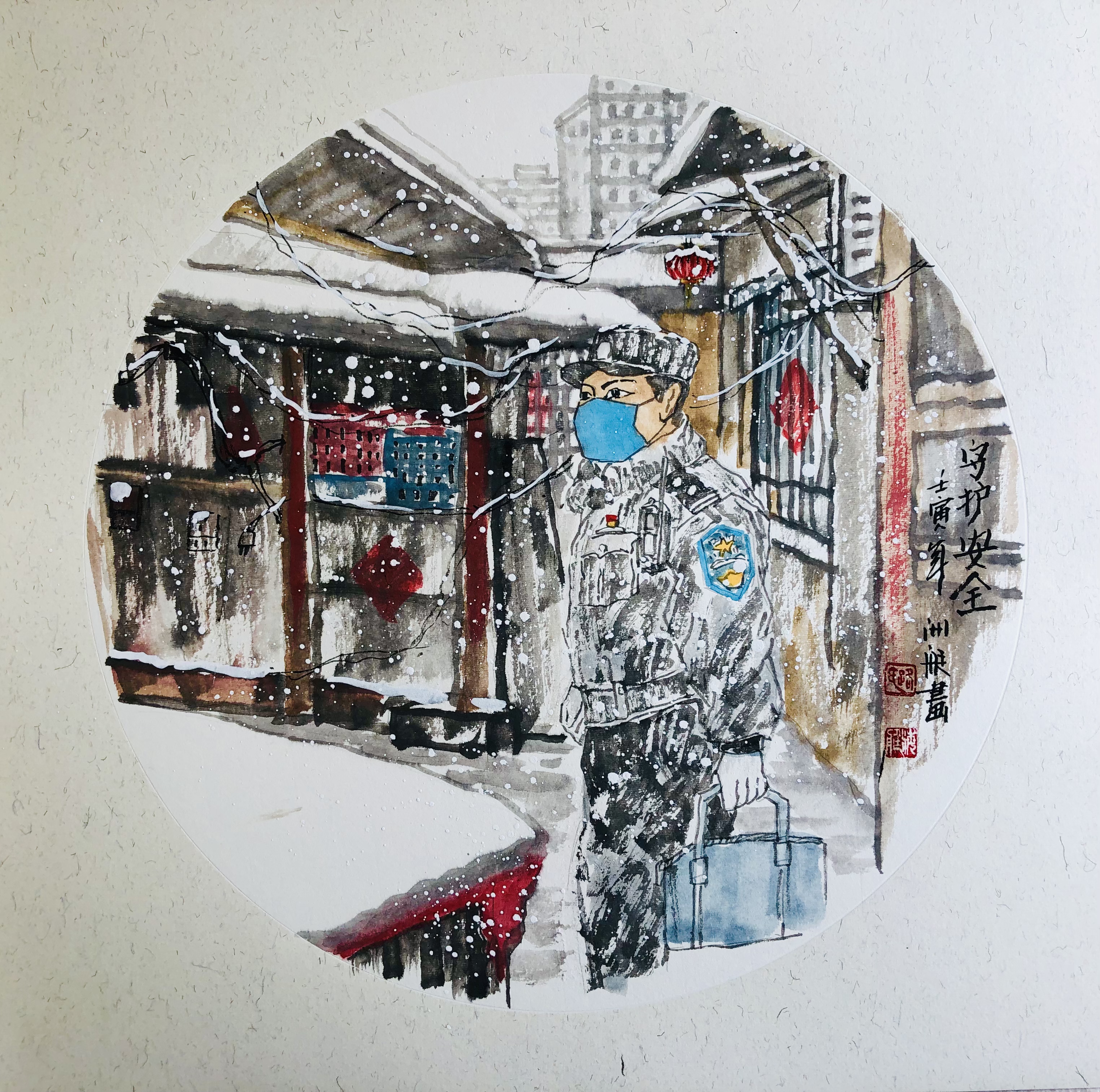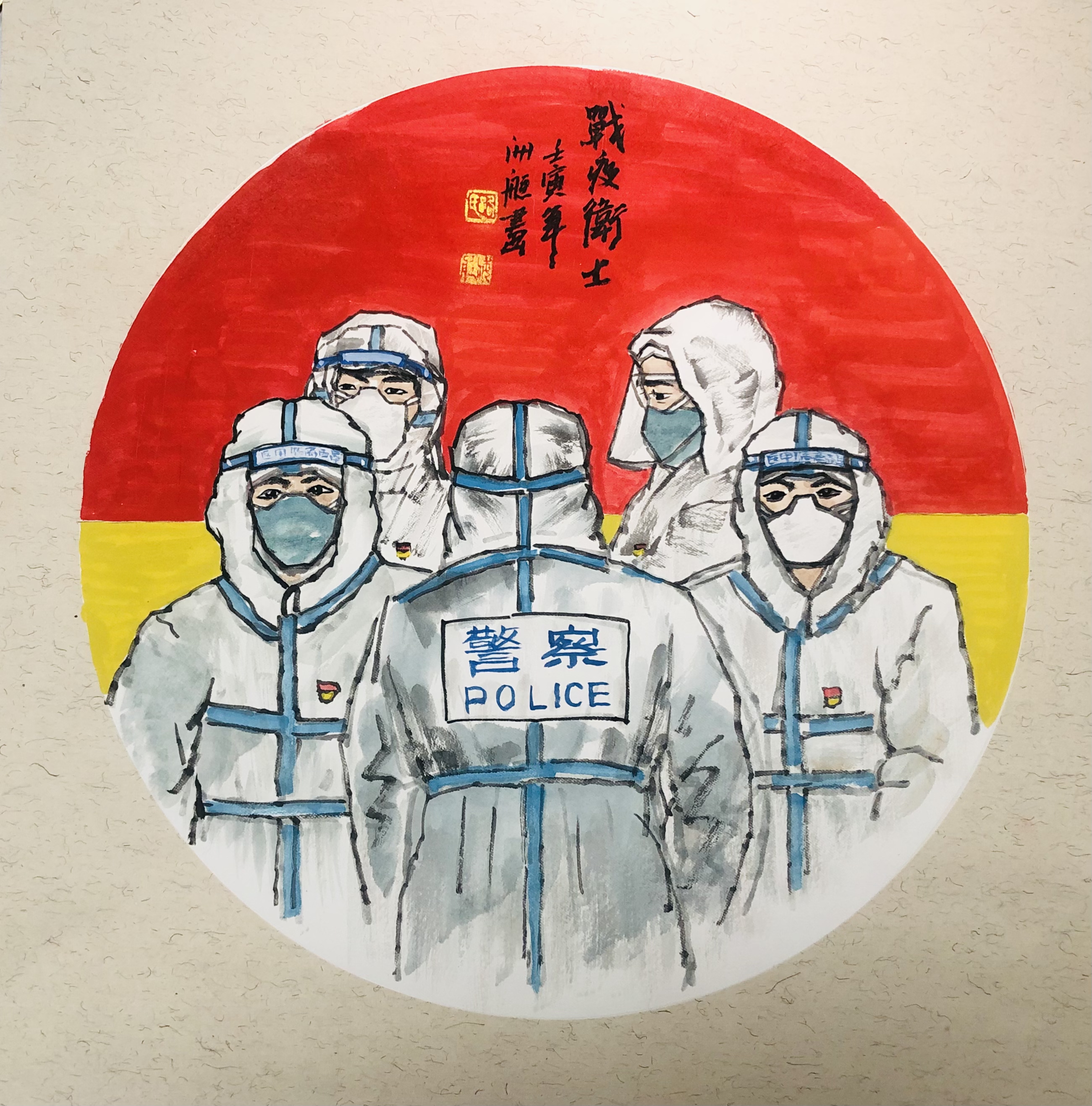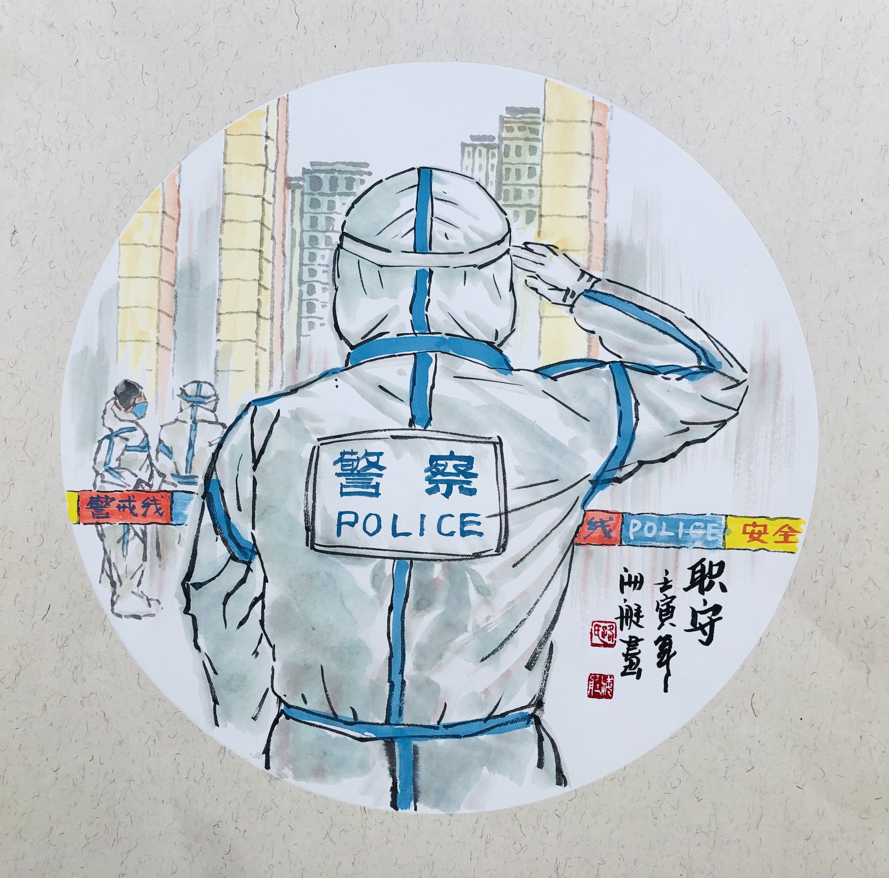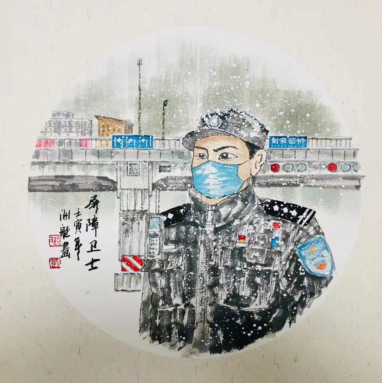 丰台公安分局反特巡支队民警路海艇,在值守巡逻工作之余,笔耕不辍,利用自己手中画笔精心创作战“疫”题材的国画作品,用作品鼓舞士气,凝聚人心,为打赢疫情防控歼灭战加油助力。