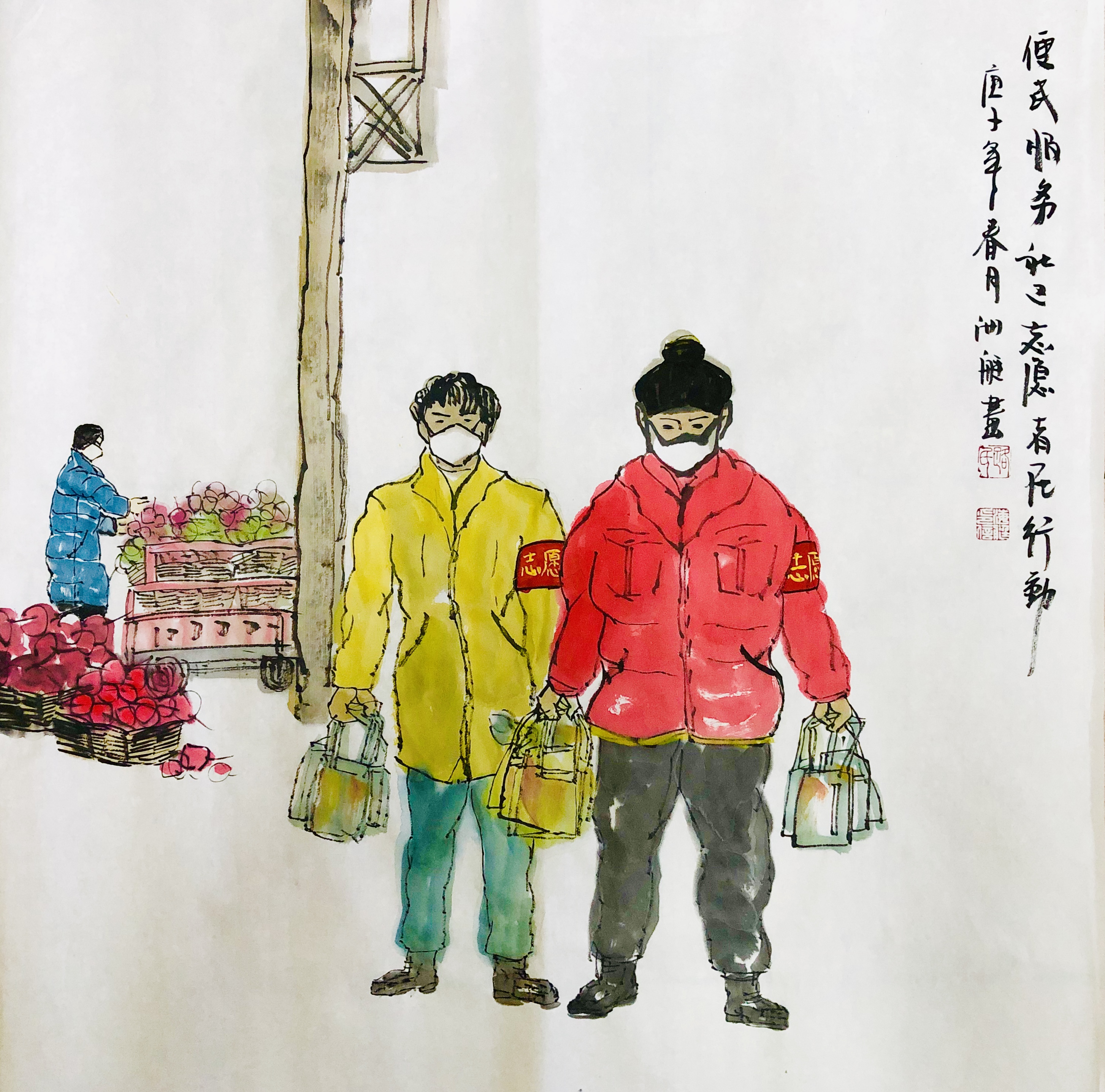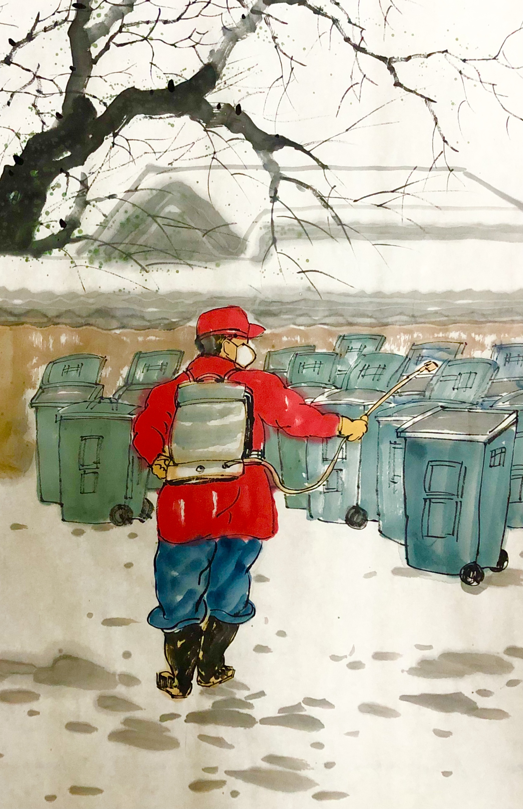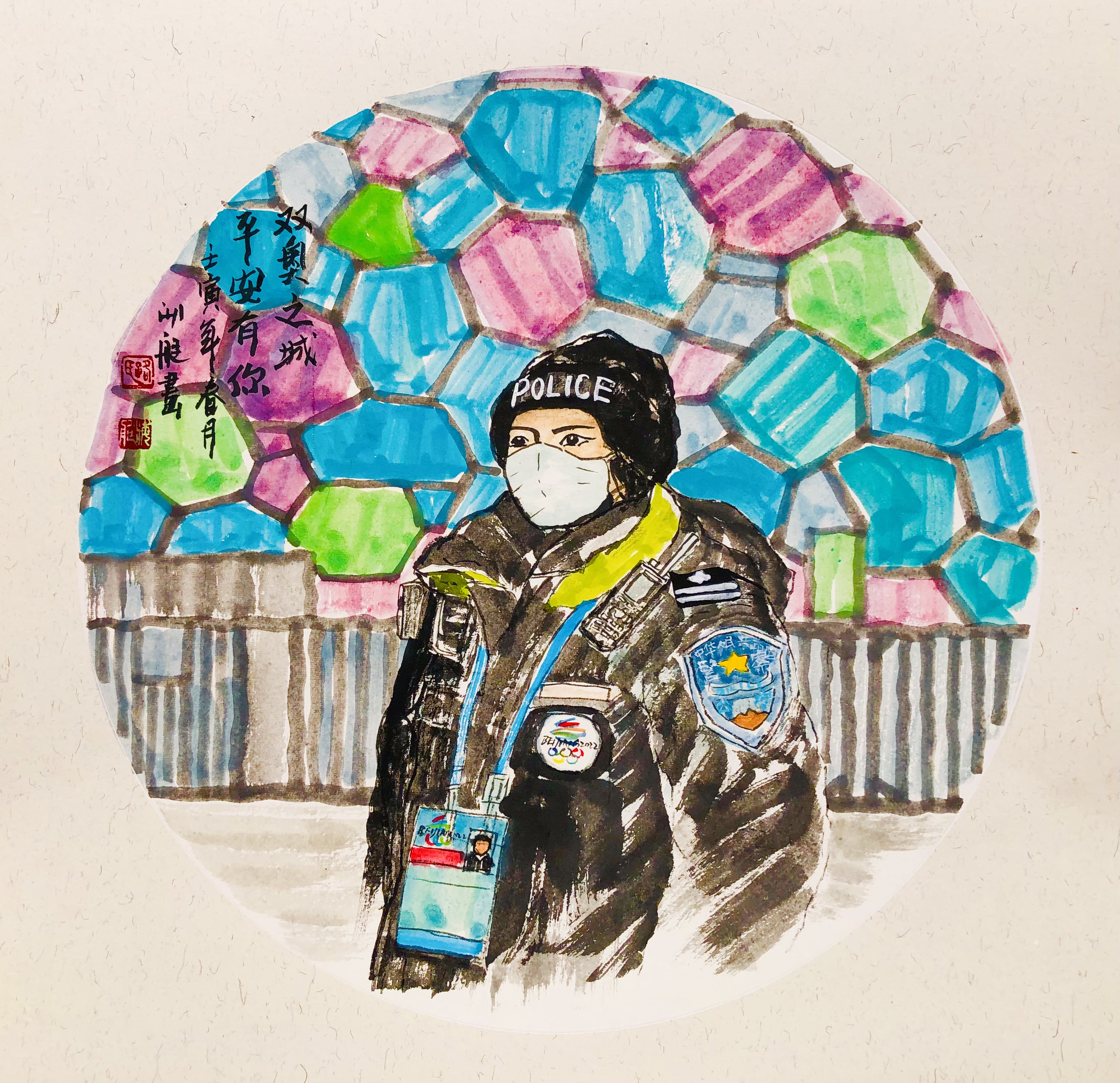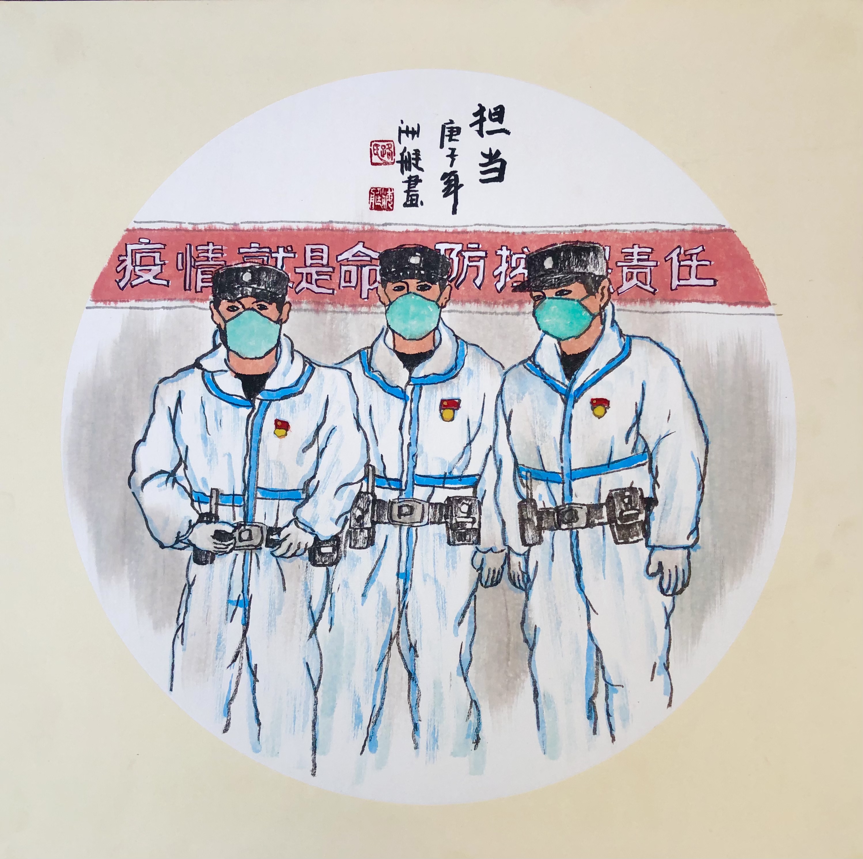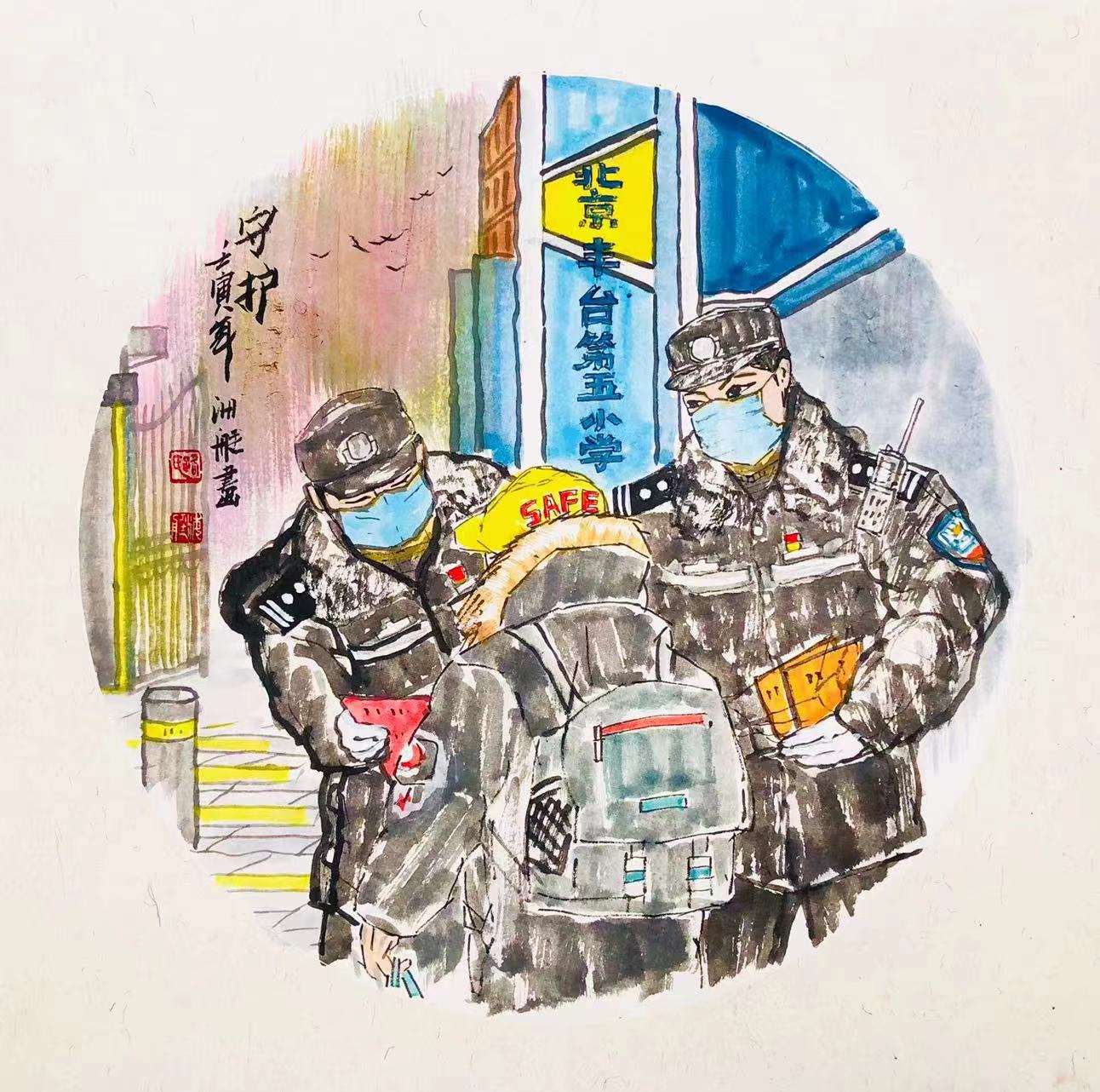 丰台公安分局反特巡支队民警路海艇,在值守巡逻工作之余,笔耕不辍,利用自己手中画笔精心创作战“疫”题材的国画作品,用作品鼓舞士气,凝聚人心,为打赢疫情防控歼灭战加油助力。