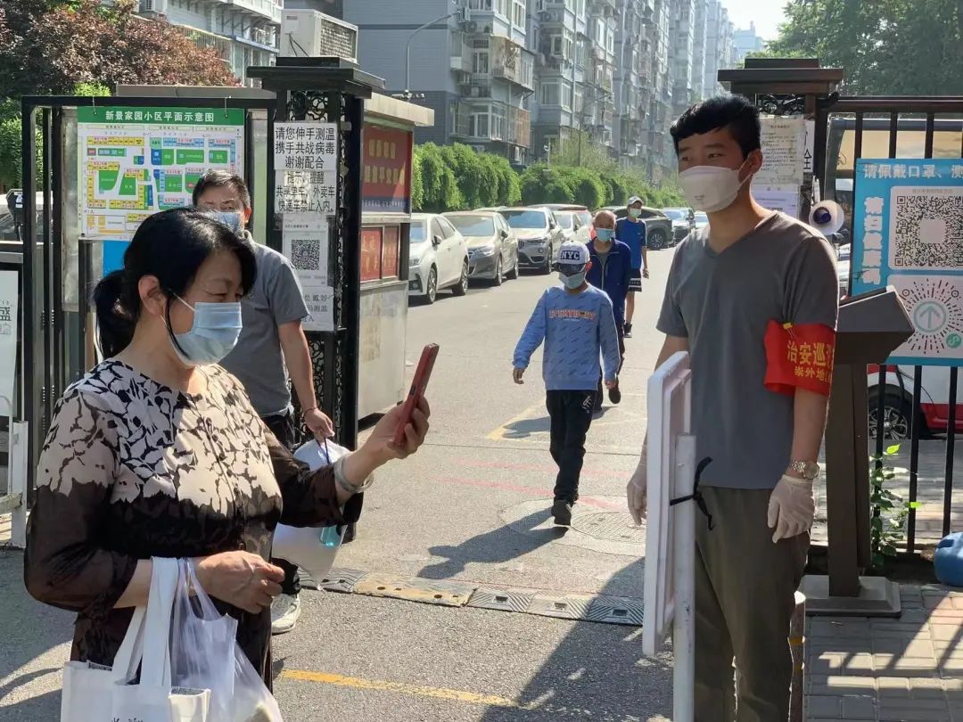 “请您扫码测温……”36℃的天气,别人躲在屋里吹空调,下沉干部、党员、志愿者、保安等力量却坚守在崇外各社区卡口处。