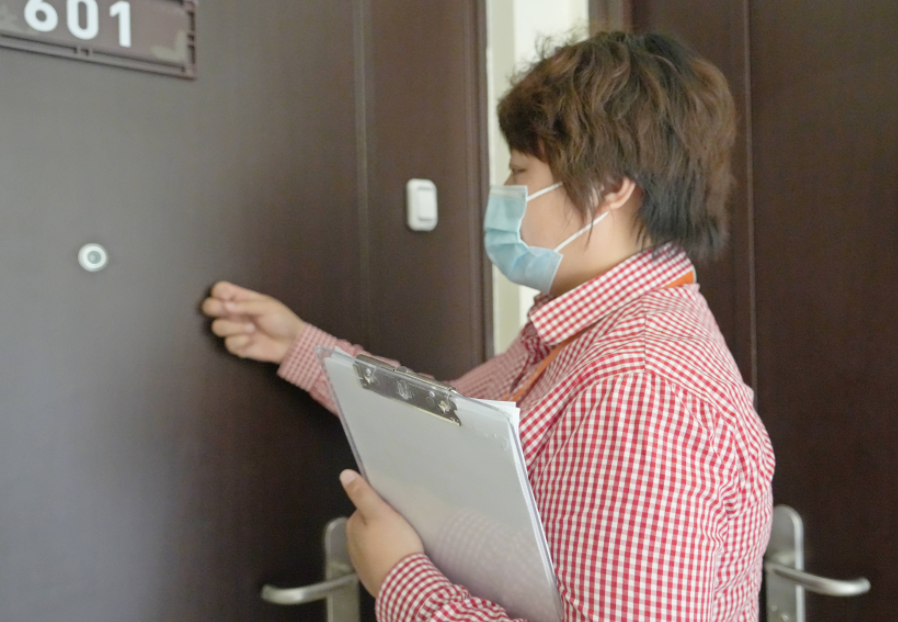 作为生活管家,郭彦红每天早晨上岗的第一件事,就是入户访视。封闭管理期间,子女不能探视,小郭便增加入户访视频次,尤其对于独居长辈,会给予特别关注。她就像是一本行走的“备忘录”,心里装满了长辈们的大事小事,长辈们总说利落能干的她“不是儿女胜似儿女”。