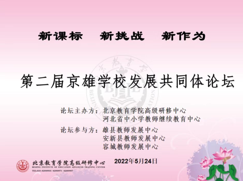 5月24日,第二届京雄学校发展共同体论坛线上举行。论坛以“新课标,新挑战,新作为”为主题,助推2022年版新课标落实,旨在进一步提升雄安新区优秀校长与教师团队课程领导力,建设京雄学校发展共同体。