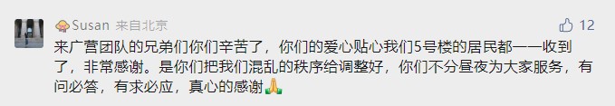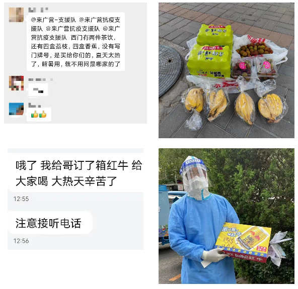 发现问题后,两位队长从来广营地区专程调配两辆“配送小车”运输物资,大幅提升了配送速度。