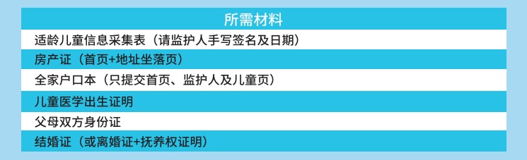 *家长提供的证件材料须与信息采集表上的信息一致。若提供虚假材料,一经查实,交区教委相关部门处理。