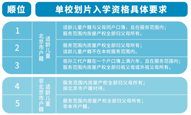 1. 学校将依序确定单校划片资格:同一顺位中,以房屋所有权证(不动产权证书)登记日期先后进行排序;