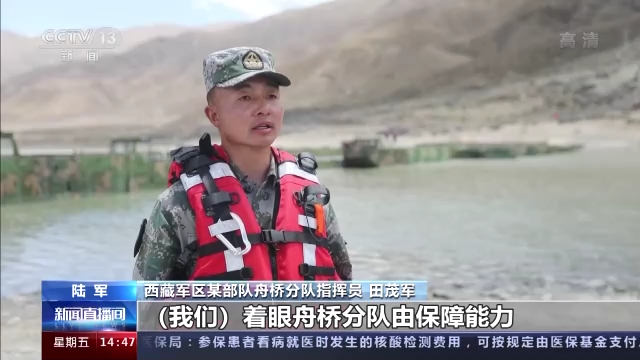 西藏军区某部队舟桥分队指挥员 田茂军:(我们)着眼舟桥分队由保障能力向作战能力转变,着力区域自然环境和渡河工程保障特点,加紧新老兵合训,提升全天候、全地域保通能力。