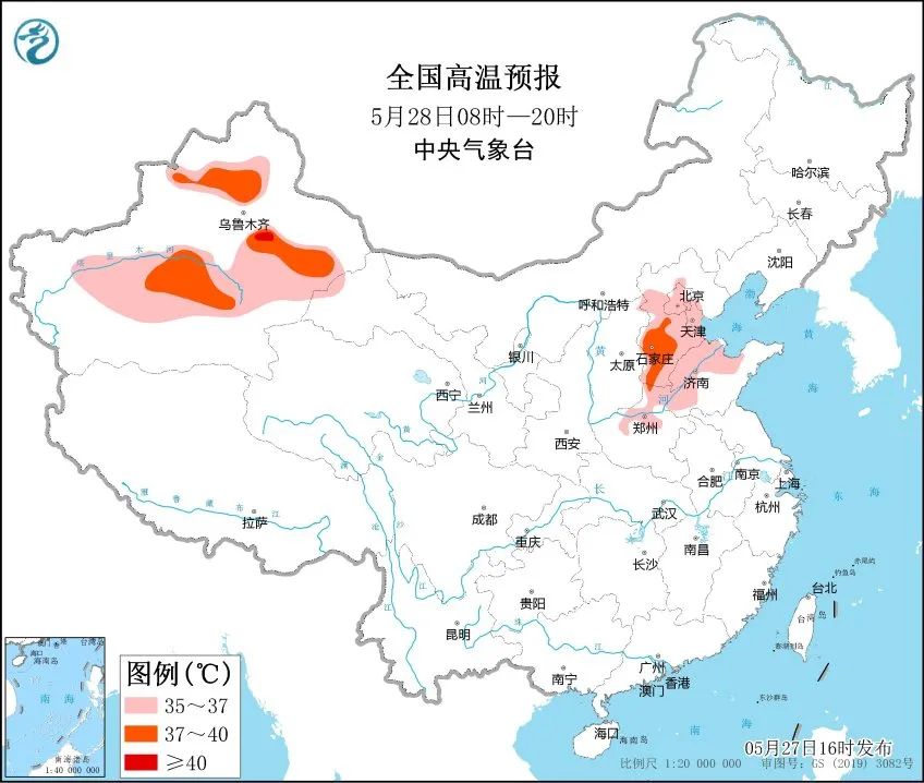 城市中,石家庄、天津均达到35℃