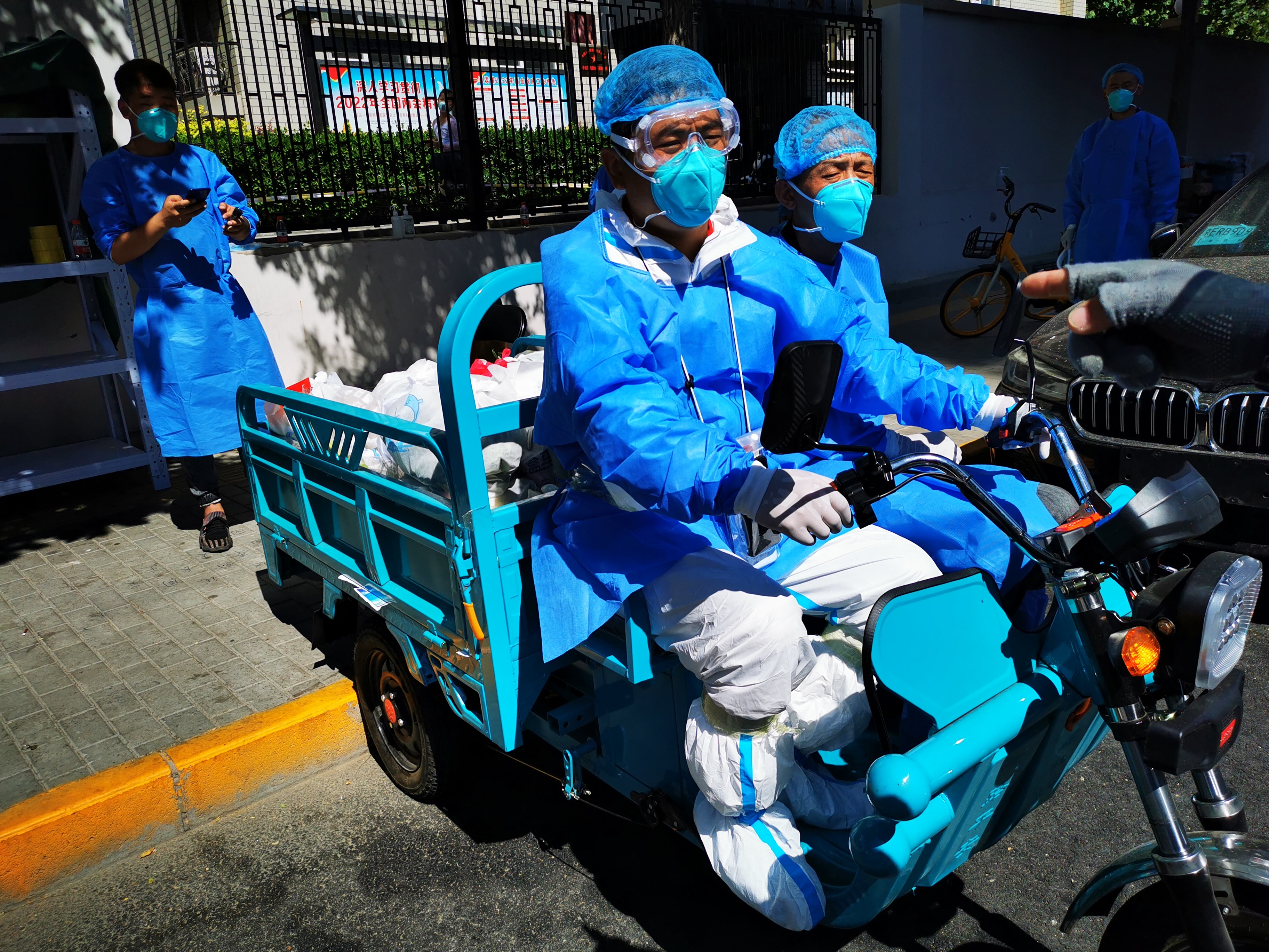 “封闭管控最重要的就是把快递送上去,把垃圾运下来。根据疫情防控要求,两支队伍不能交叉,不能互相帮忙。”戴鹏飞说,“每天早上6点和晚7点在建邦风景和春风雅筑小区都会准时出现挨家挨户收垃圾“大白”们的身影。”