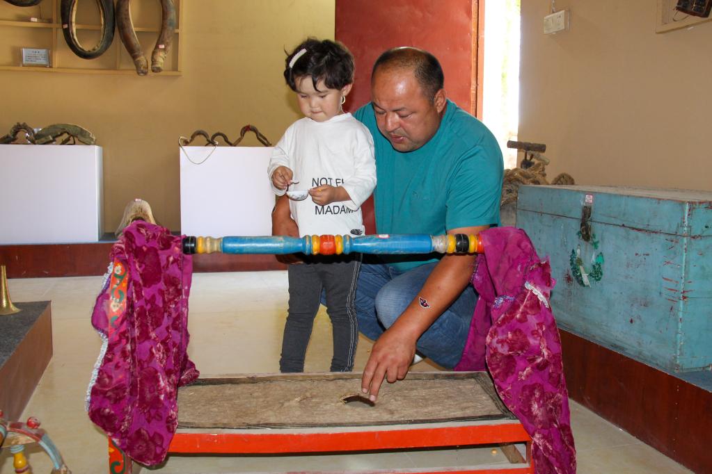 “我的兄弟姐妹都是在这个摇床里长大的。”海拉提说,自己幼年时代,大人们忙着干农活、喂牲畜、洗衣做饭,对小孩无法做到“全天候”照顾,为了减轻照看婴幼儿的压力,摇床发挥了大用处。