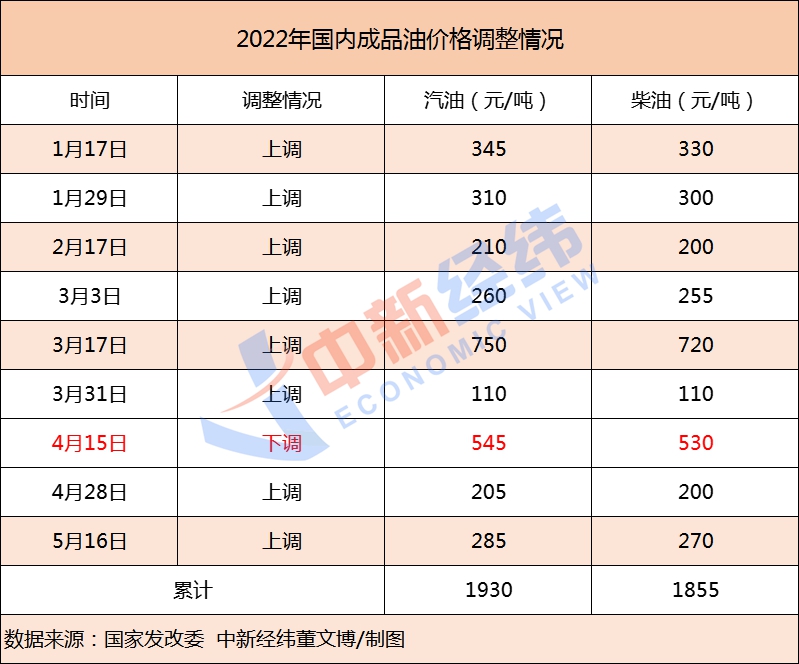 据记者梳理,今年以来,国内成品油价格已进行了九轮调整,汽油价格累计上调1930元/吨,柴油价格累计上调1855元/吨,呈现“八涨一跌零搁浅”格局。
