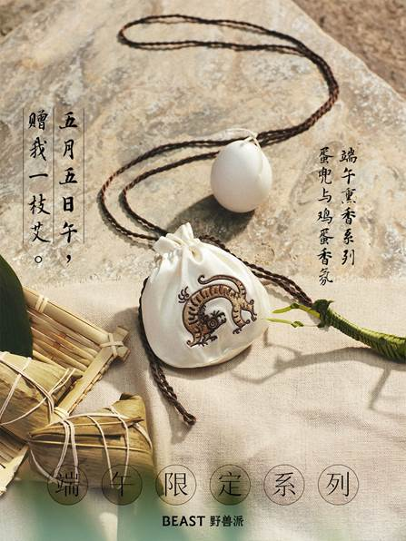 该系列结合中国传统端午习俗,以佩香囊,立鸡蛋,挂艾草为灵感,创意发布端午限定香囊、蛋兜及香氛蜡烛,满满仪式感凸显端午佳节的传统节日魅力。