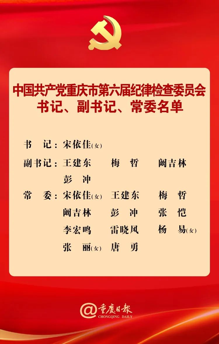 5月31日,中国共产党重庆市第六届纪律检查委员会第一次全体会议召开。全会选举并经市委六届一次全会通过,产生了新一届市纪委常委和书记、副书记。宋依佳当选重庆市纪委书记。
