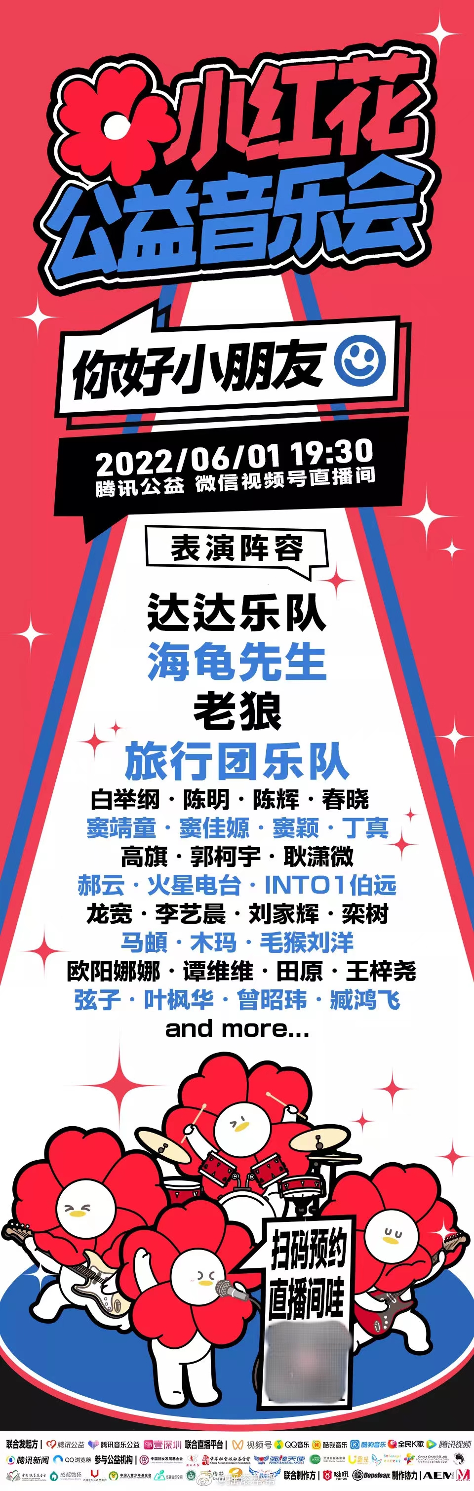 6月1日晚19时30分,腾讯公益视频号将会网络直播“你好小朋友”小红花公益音乐会,众多明星都会在线参加,演唱动人的新老童歌,陪大家一起欢度六一。