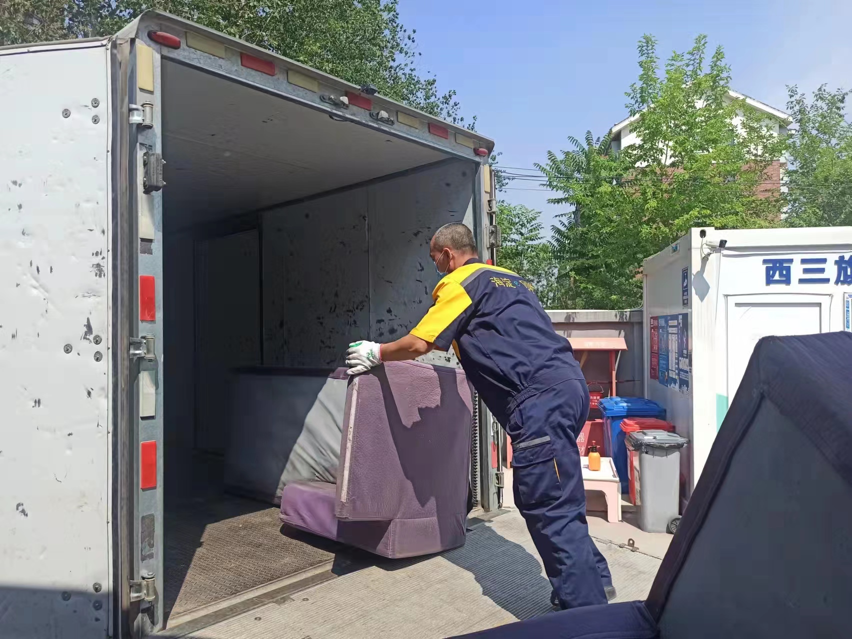 海淀区物资回收公司相关负责人介绍,社区的物业保洁人员会将收集到的大件垃圾等回收物集中交投到回收中转站,个别社区人员不足存在清运需求,回收中转站会提供上门清运服务,及时保障各类垃圾收运消纳。