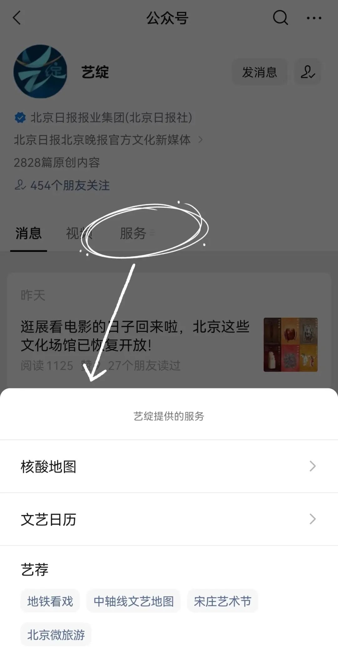 即日起,北京市民点击“北京日报”“北京晚报”“长安街知事”“艺绽”等微信公众号菜单栏,进入“核酸地图”,可以实现核酸检测机构查询、一键预约检测、报告查询等服务。微信搜索腾讯健康小程序,或者在微信菜单“我”-“服务”,进入“医疗健康”,也可使用核酸检测地图。