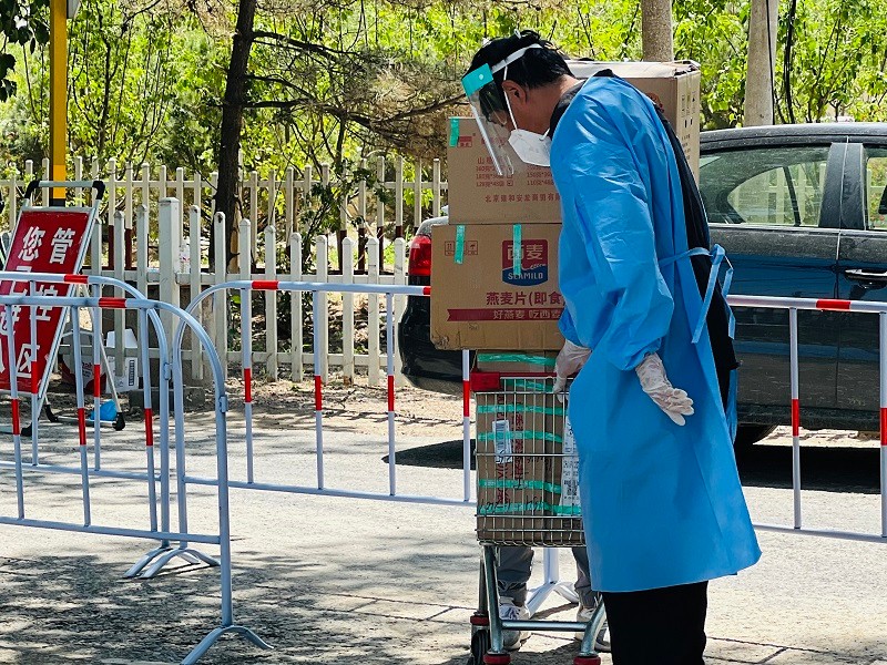 日前,北七家镇东三旗村因有确诊病例曾到访,村域内重点区域进行封控管理。为应对居民快递、外卖量骤增的情况,由区商务局牵头,区农业农村局、区城管委、北七家镇等部门协同配合,对东三旗村东口快递转运站货架设施进行升级改造,进一步保障快递、外卖转运有序,确保居民物资需求得到满足。