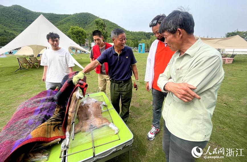 在余村党群服务中心对面不远处有一片草坪,今年入春以来,这里掀起了露营热。“1只羊、1头乳猪、16只鸡,这都是游客预订的……”下午4点,横路村村民李小华来到草坪上为客人烤制晚餐。
