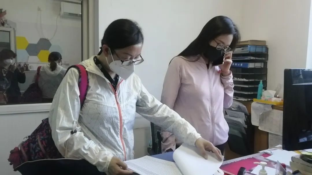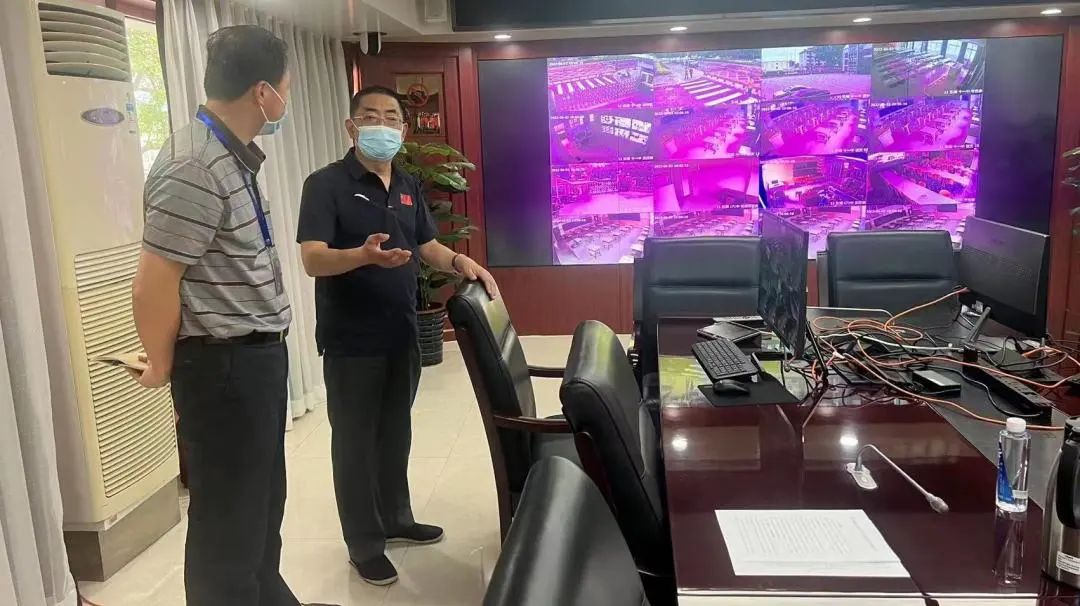市纪委监委第五监督检查室副主任、市纪委监委驻东城区监督组组长崔全利与区纪委监委第二监督检查室到区教育招生考试中心检查2022年高考组织筹备及疫情防控情况。