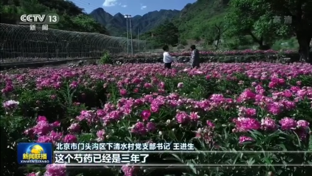 北京市门头沟区下清水村党支部书记 王进生:这个芍药已经是三年了,今年秋天就可以采了,估计这块收入也得几万块钱吧。原来靠山吃山是挖煤,现在我们靠的是绿水青山。