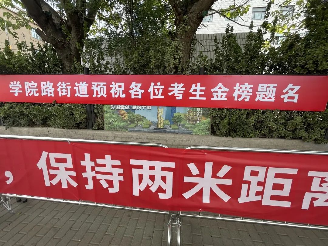 “加油,小伙子,你是最棒的”“加油小姑娘,正常发挥就是最优秀的”考点外,安保人员一声声的祝福也让考生们以最饱满的精神状态步入考场。“我们还特意在通道外,设置了一排红色帐篷,寓意着孩子们鸿运当头,我们也会做好各项服务保障工作,孩子们安心考试,其他的交给我们。”中关村街道办事处副主任包长青说道。