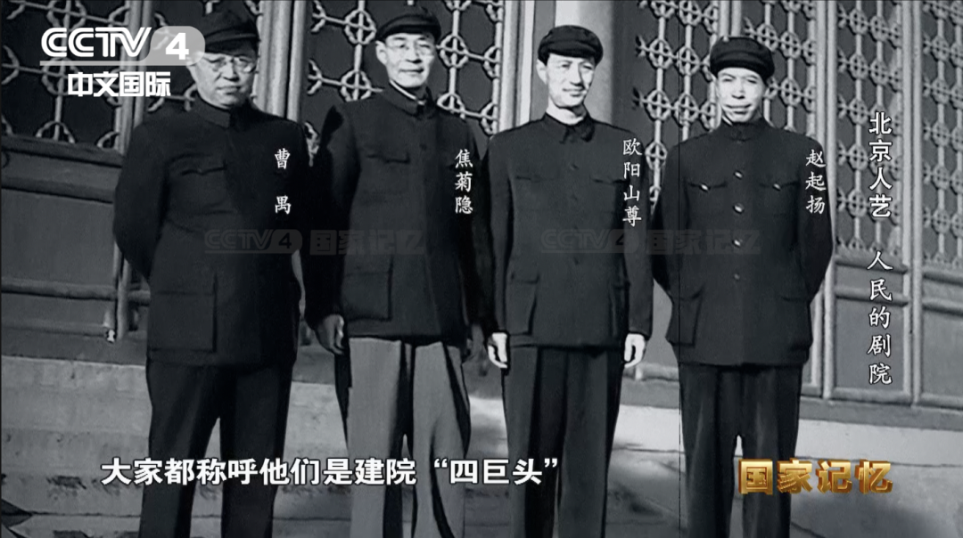 史家胡同20号,曾经是一座有着三十多间平房的院落,1952年6月12日晚,北京人民艺术剧院建院大会在这里举行。北京市副市长吴晗代表北京市政府宣布北京人民艺术剧院成立,并宣布曹禺担任院长,焦菊隐、欧阳山尊为副院长,赵起扬为秘书长。后来在人艺里,大家都称呼他们是建院“四巨头”。
