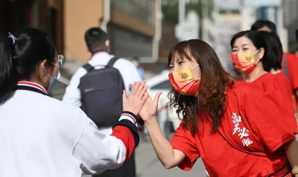 标有“高考必胜”祝福的红T恤,书写了老师对学生的责任与鼓励,红色的旗袍、耀眼的葵花,承载着父母对孩子的关爱与希望,开道护航、加强防疫的举措,注入了更多人对学生的真诚呵护。