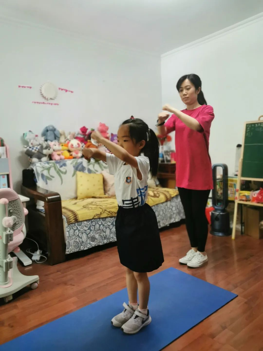 为了更好地将体育融入到家庭的每个角落,充分利用居家学习契机增进亲子关系,体育与健康部与“爸爸运动队”合作,利用律动空间,让大朋友能够带领着小朋友们进行体育锻炼。用快乐教育的理念塑造孩子完善的人格和坚毅的品质,使亲子锻炼逐步成为孩子饭后、业余时间的必修功课。