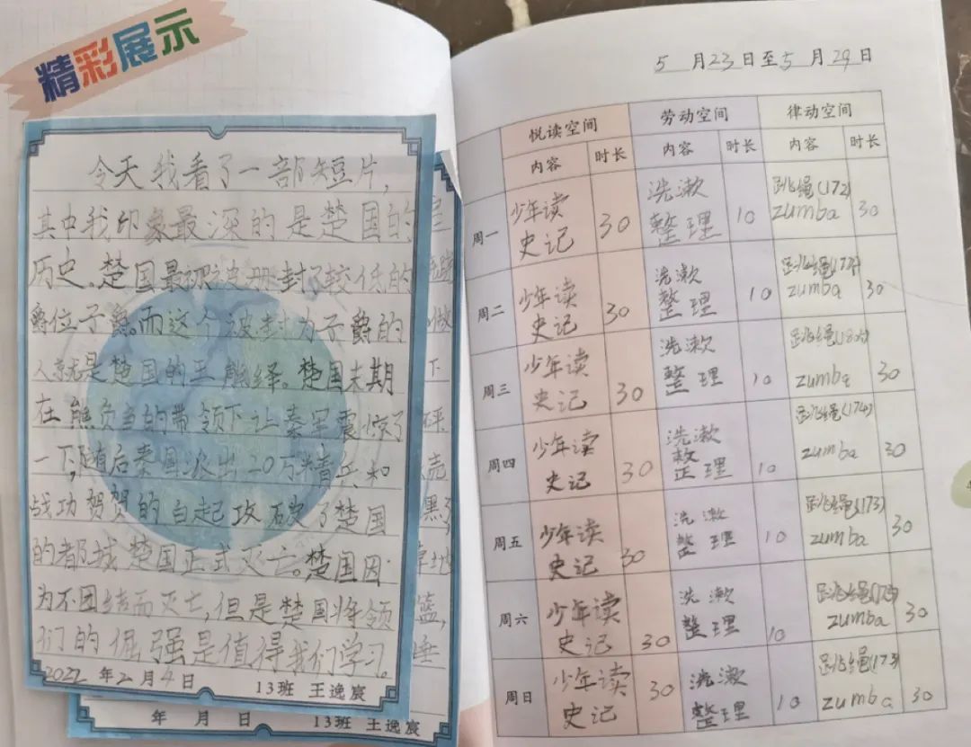 为了能够督促学生将每日锻炼落到实处,要求学生将律动空间的锻炼进行打卡记录。不仅记录练习的内容还要记录自己练习的组数以及本次练习的最好成绩。这些打卡记录不仅见证了学生运动能力的提升。也将成为恢复线下教学后评价学生运动习惯的重要参考。