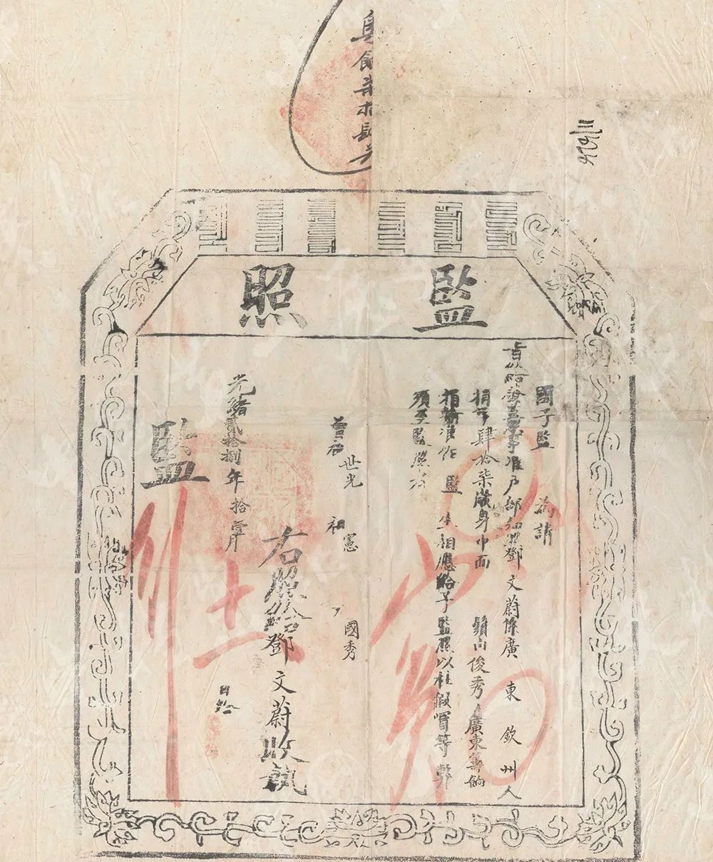 △ 图为“国子监发给邓文蔚准作监生执照”