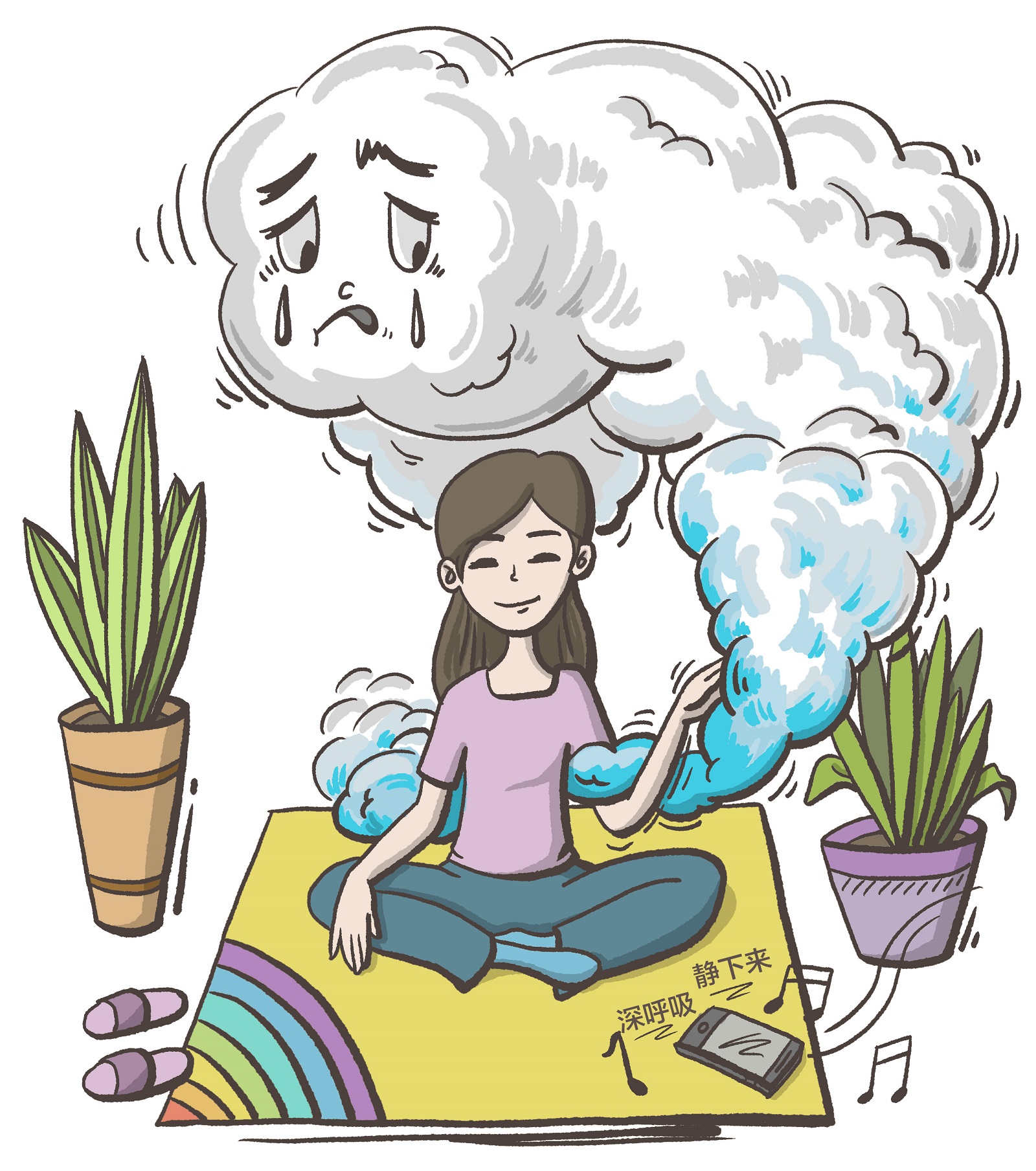 张玉敏建议,如果想象出情绪的模样,可以闭上眼睛说,我看见你了,你是我生命的一部分……“情绪被看见、允许并接纳后,人会感觉好一些。比如有些人原来的情绪是‘灰色的,有汽车那么大’,经过调适会变小,颜色也会改变,效果还是很明显的。”