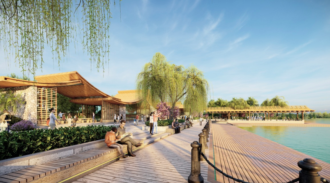 整个景区的游客线路按照“1+1+6”景区游线体系构建,即“1条水上大环线+1条陆上大环线+6条景区小游线”,采用“游船+步行+电瓶车+自行车”多种交通方式串联起景区的各个景点。有条件的区域将增加5处休闲健身场所和4处无动力儿童活动设施游乐场地。