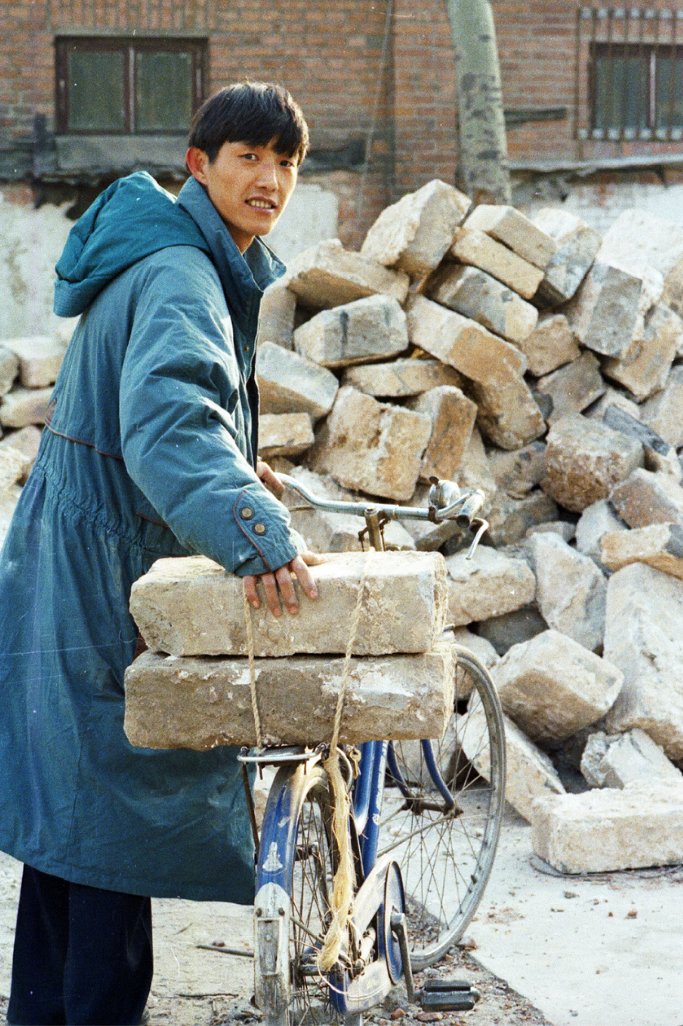 于是,年近六旬的魏锦山每天下班后,骑着二八自行车走街串巷去找砖。朝阳门、东直门、西直门、虎坊桥等各大拆迁改造工地,他一个都不落下。每到一个工地,发现旧城砖,他就扛两块,用绳子拴在自行车后座上,骑行四十多分钟送到东便门旁边的“捐砖办公室”。